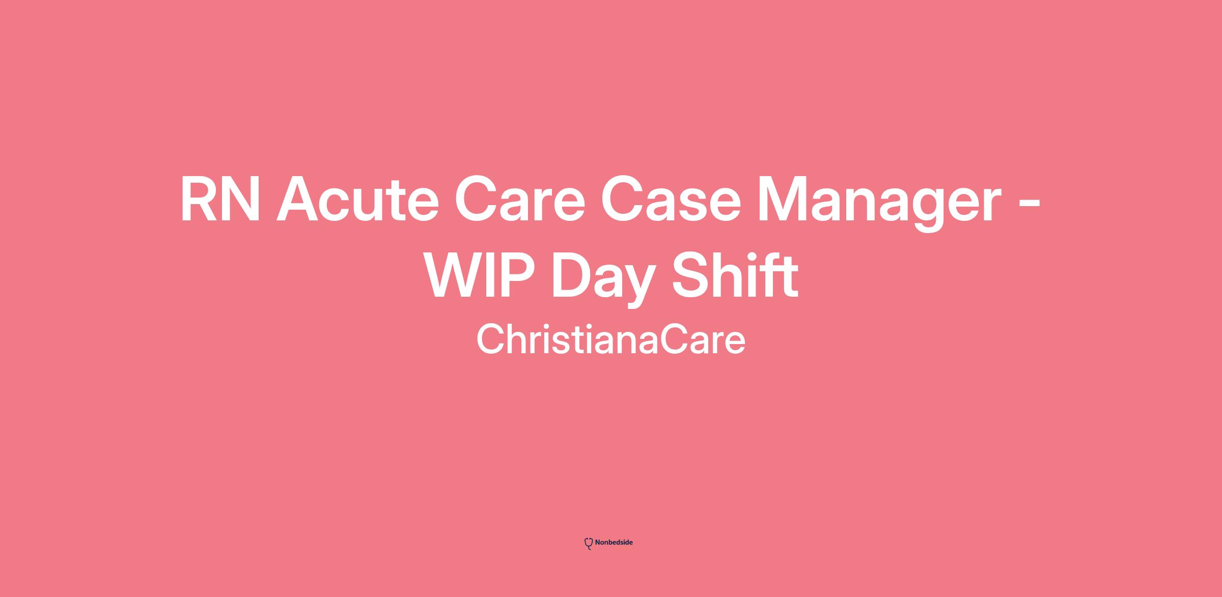 ChristianaCare - Wilmington Hospital is currently recruiting an RN Acute Care Case Manager - Weekender with experience in Transitional Care or Discharge Planning in an Acute Care Hospital Setting