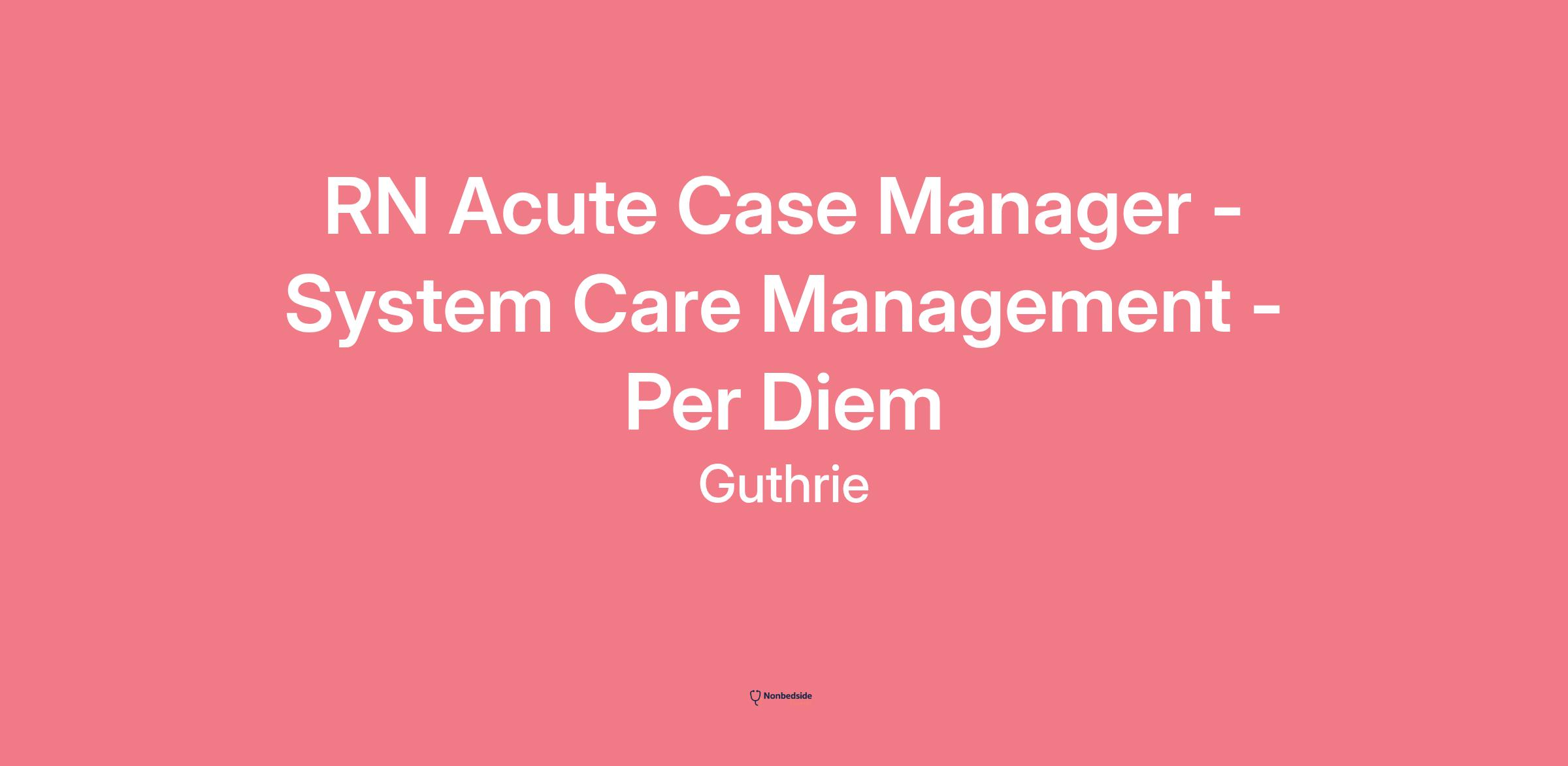 Join to apply for the RN Acute Case Manager - System Care Management - Per Diem role at Guthrie