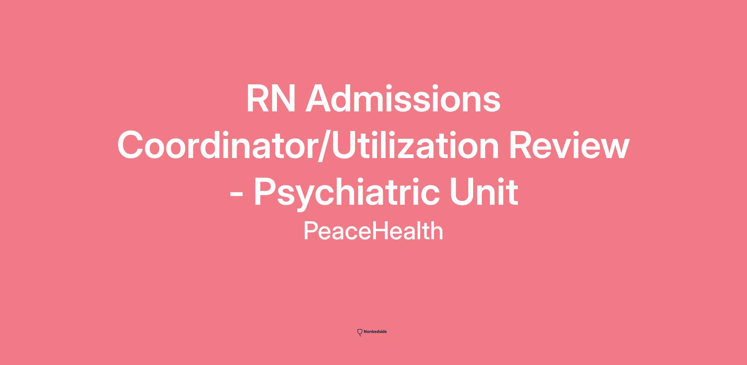 Overview RN Admissions Coordinator/Utilization Review - Psychiatric Unit for a Per Diem/Relief, 0.00 FTE, Variable position at PeaceHealth. Salary range: $47.34 – $71.00. Hiring rate dependent on education, training, experience, collective bargaining agreement terms, seniority, etc.