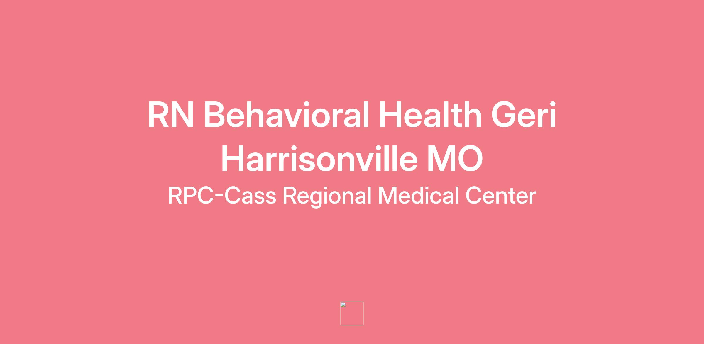 Do you want to join an organization that invests in you as a Registered Nurse RN Behavioral Health Geriatric? At RPC-Cass Regional Medical Center, you come first. HCA Healthcare has committed up to $300 million in programs to support our incredible team members over the course of three years.