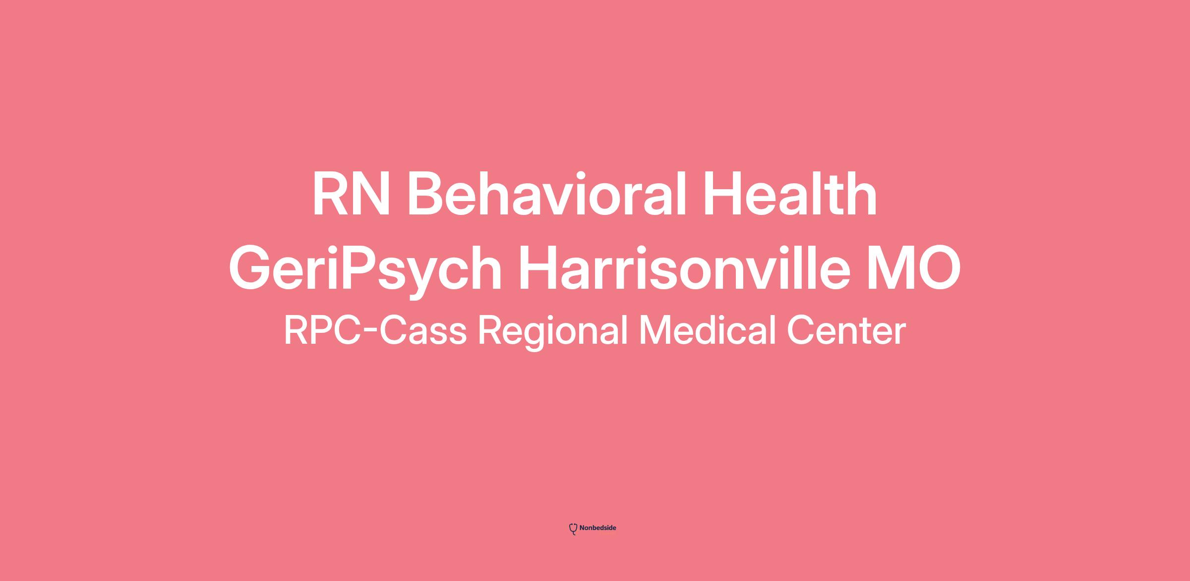 Do you want to join an organization that invests in you as a Registered Nurse RN Behavioral Health Geriatric? At RPC-Cass Regional Medical Center, you come first. HCA Healthcare has committed up to $300 million in programs to support our incredible team members over the course of three years.