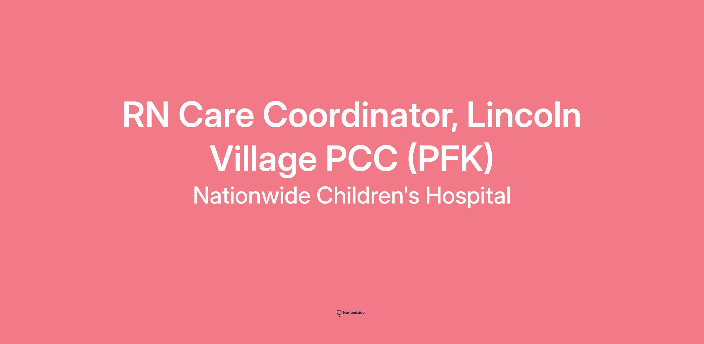 RN Care Coordinator, Lincoln Village PCC (PFK) 2 weeks ago Be among the first 25 applicants