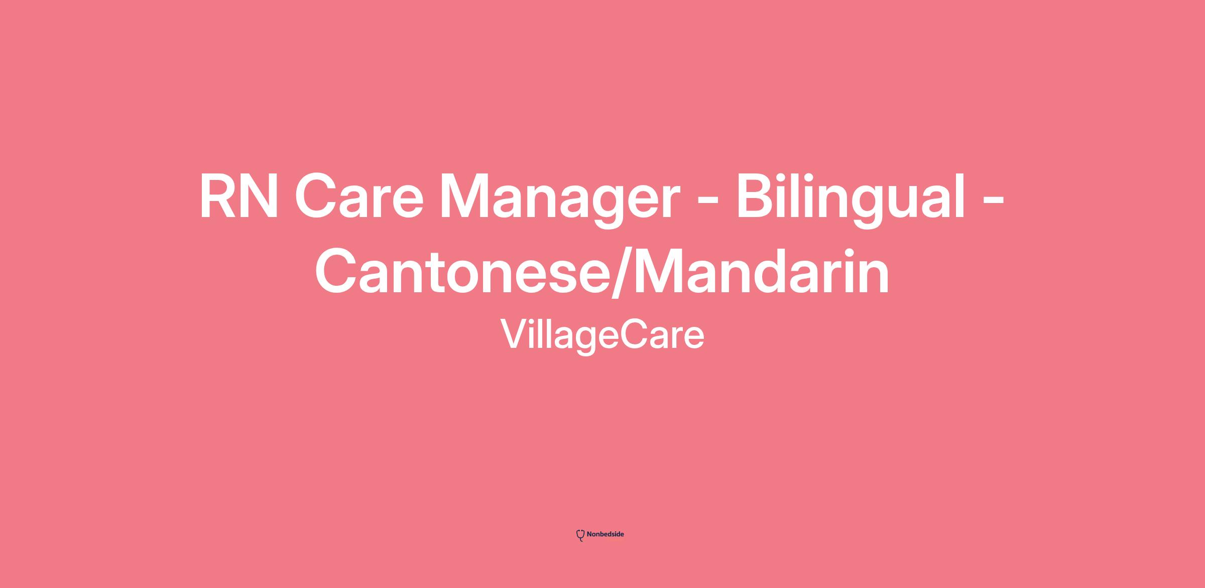 VillageCare , a community‑based, not‑for‑profit organization serving people with chronic care needs in New York City, is seeking a full‑time RN Care Manager on its DSNP team. The role requires bilingual proficiency in Cantonese and/or Mandarin and provides an opportunity to make a meaningful impact in the lives of our diverse members.