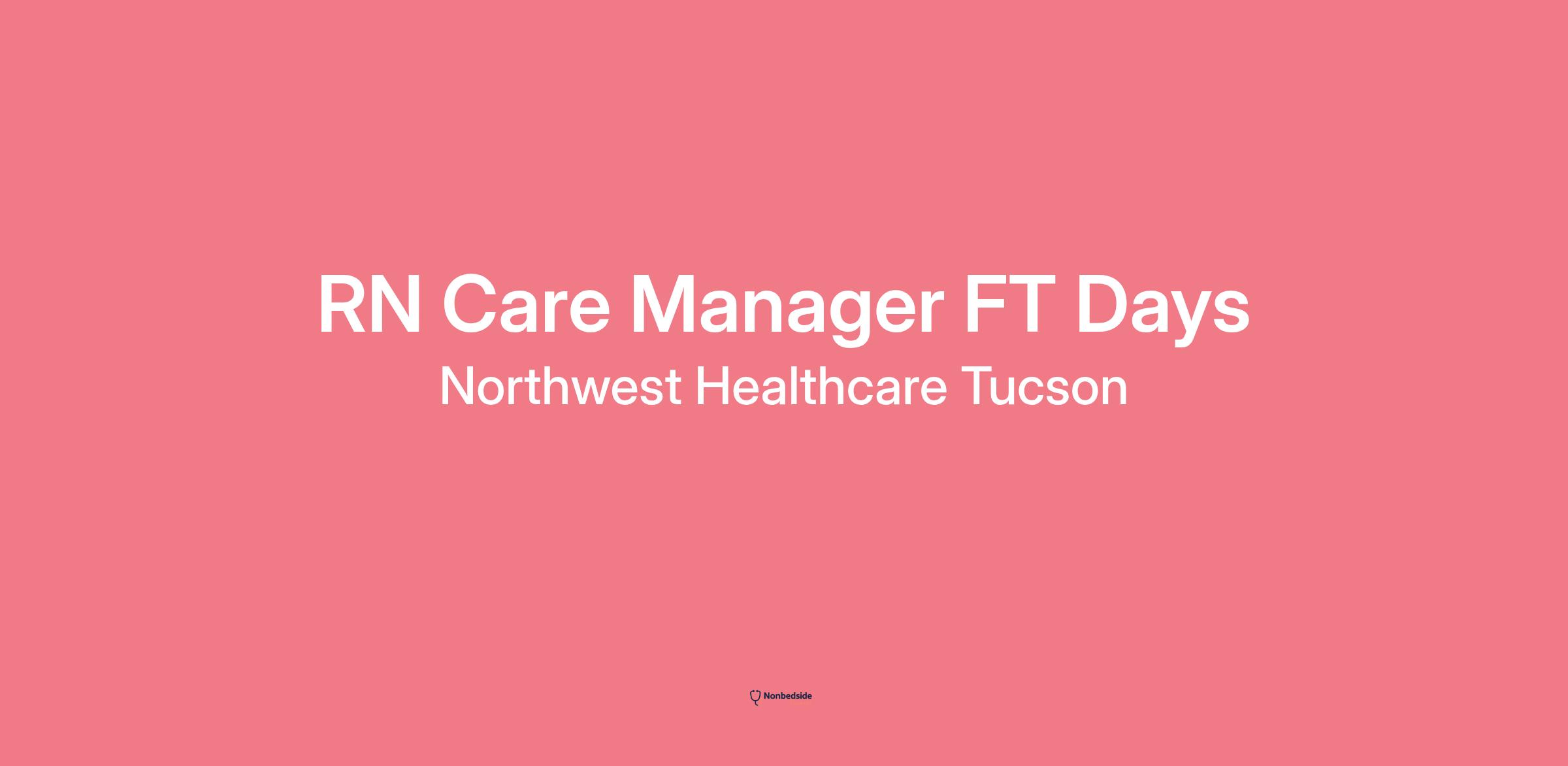 Join to apply for the RN Care Manager FT Days role at Northwest Healthcare Tucson.