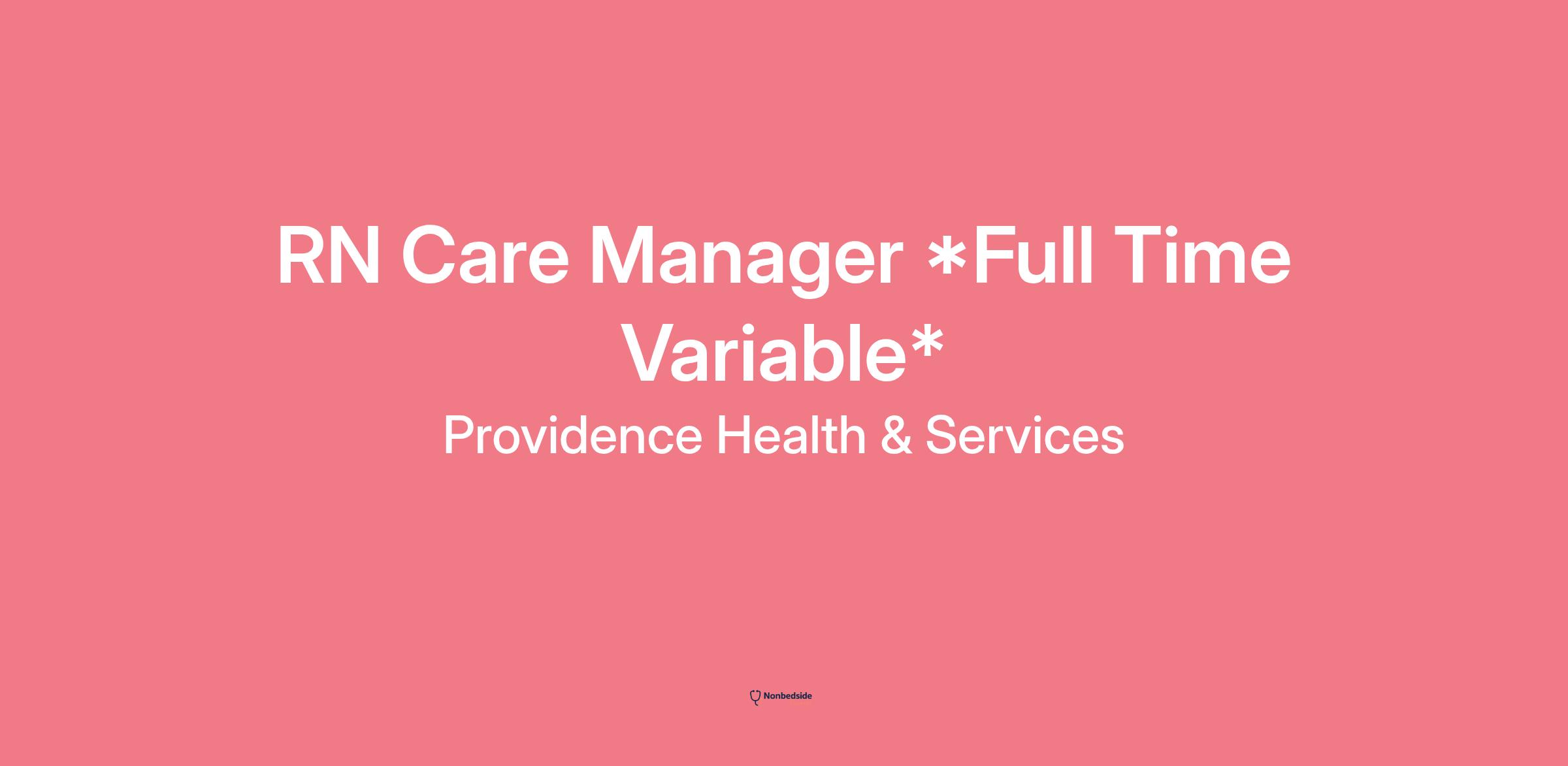 Overview Join to apply for the RN Care Manager Full Time Variable role at Providence Health & Services .