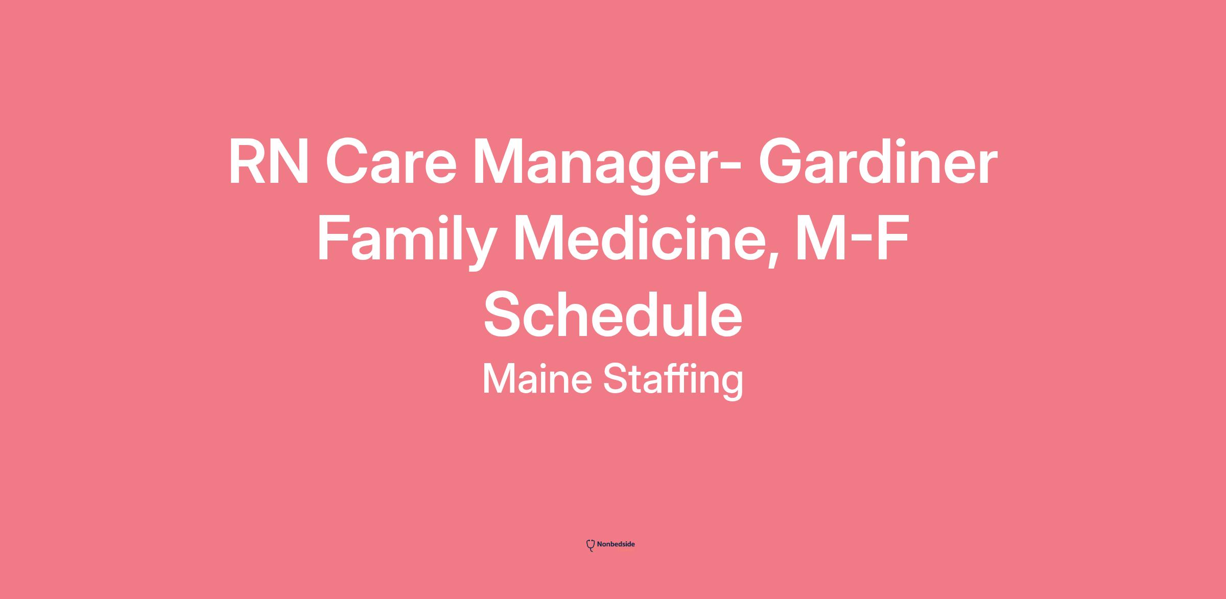 MaineGeneral Health is seeking a dedicated and proactive Registered Nurse (RN) Care Manager to join our team at Gardiner Family Medicine. In this role, you'll work collaboratively with primary care providers and multidisciplinary teams to support patients with chronic and complex health conditions. Your work will be central to improving outcomes, enhancing the patient experience, and helping us deliver high-quality, value-based care.