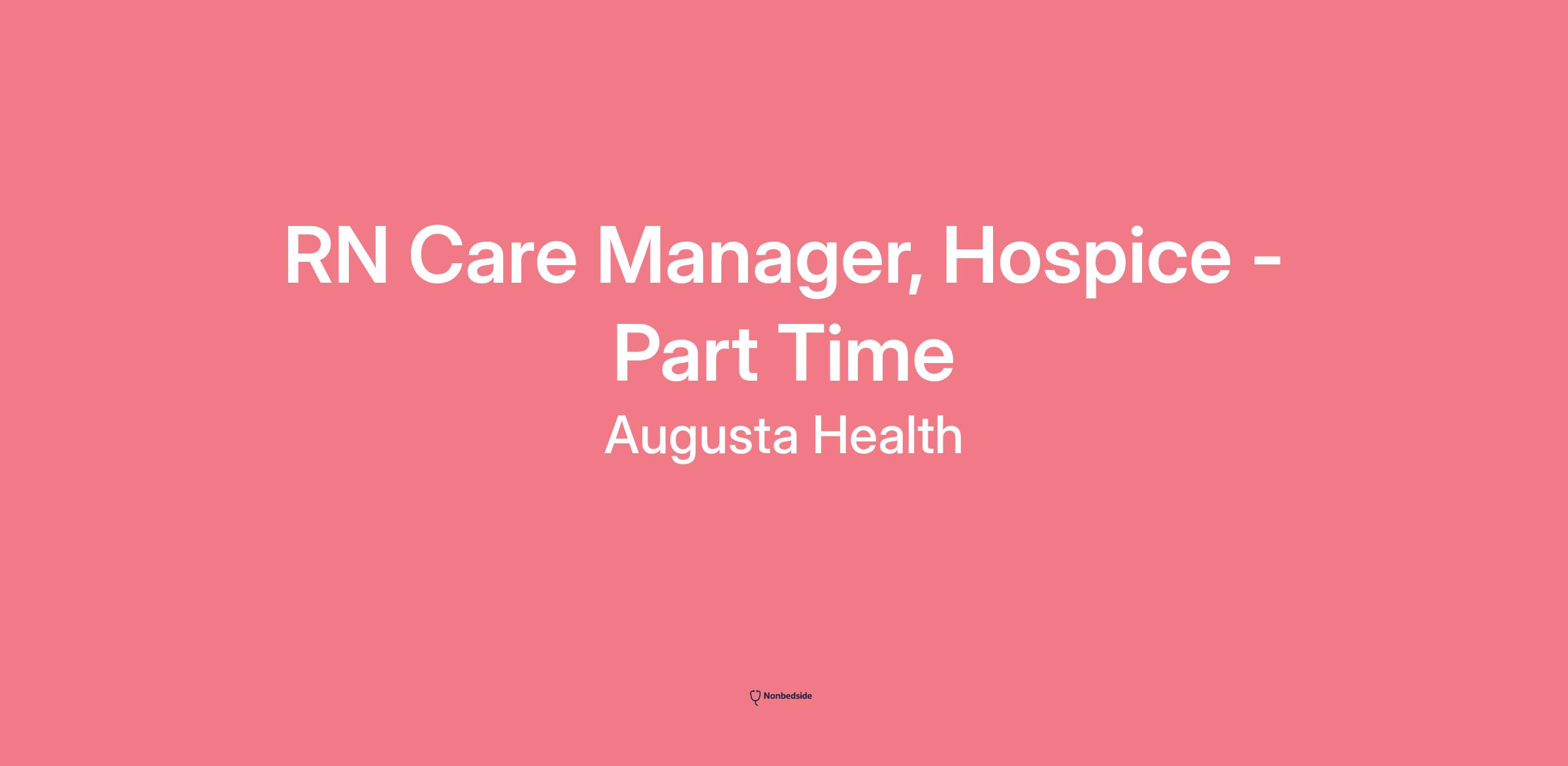 As a registered nurse at Augusta Health, you will manage and coordinate the plan of care for hospice patients in their place of residence, coordinating care with the interdisciplinary team, patients, families, referring agencies/facilities, and/or caregivers. The RN administers nursing care for patients utilizing all aspects of the medical plan and nursing standards of care, direct and guide patient/family education and the activities of other personnel while maintaining professional nursing standards. You must possess the ability to assess data reflective of the patient’s status and interpret the information to formulate a plan of care based on the patient’s age‑specific needs and be able to provide the care as described in the department’s policies and procedures.