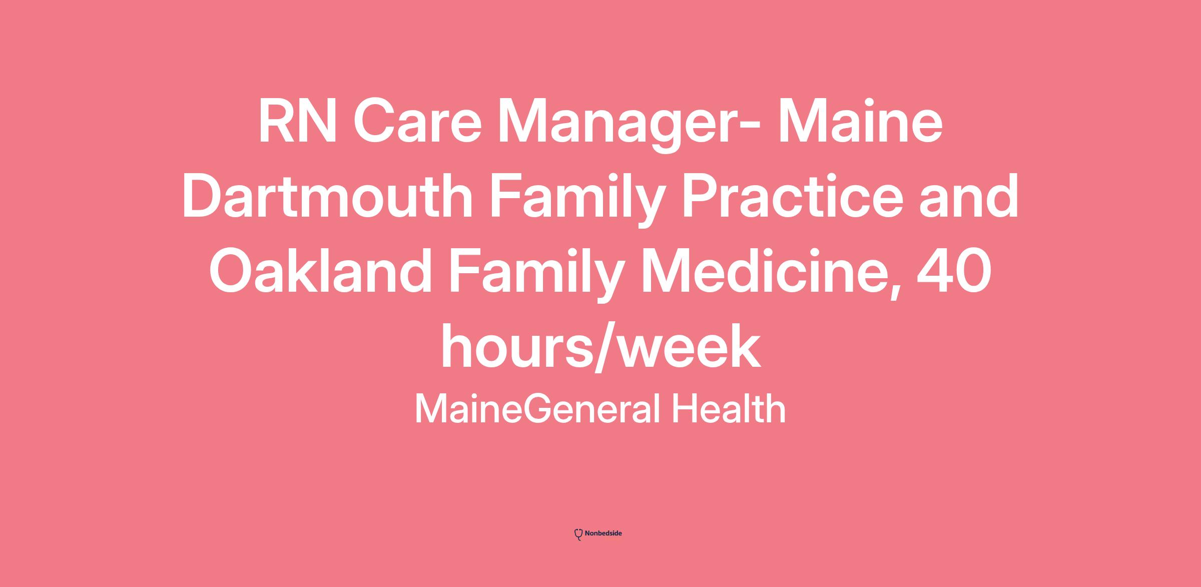 MaineGeneral Health is seeking a dedicated and proactive Registered Nurse (RN) Care Manager to join our team at Maine Dartmouth Family Practice and Oakland Family Medicine. In this role, you'll work collaboratively with primary care providers and multidisciplinary teams to support patients with chronic and complex health conditions. Your work will be central to improving outcomes, enhancing the patient experience, and helping us deliver high-quality, value-based care.