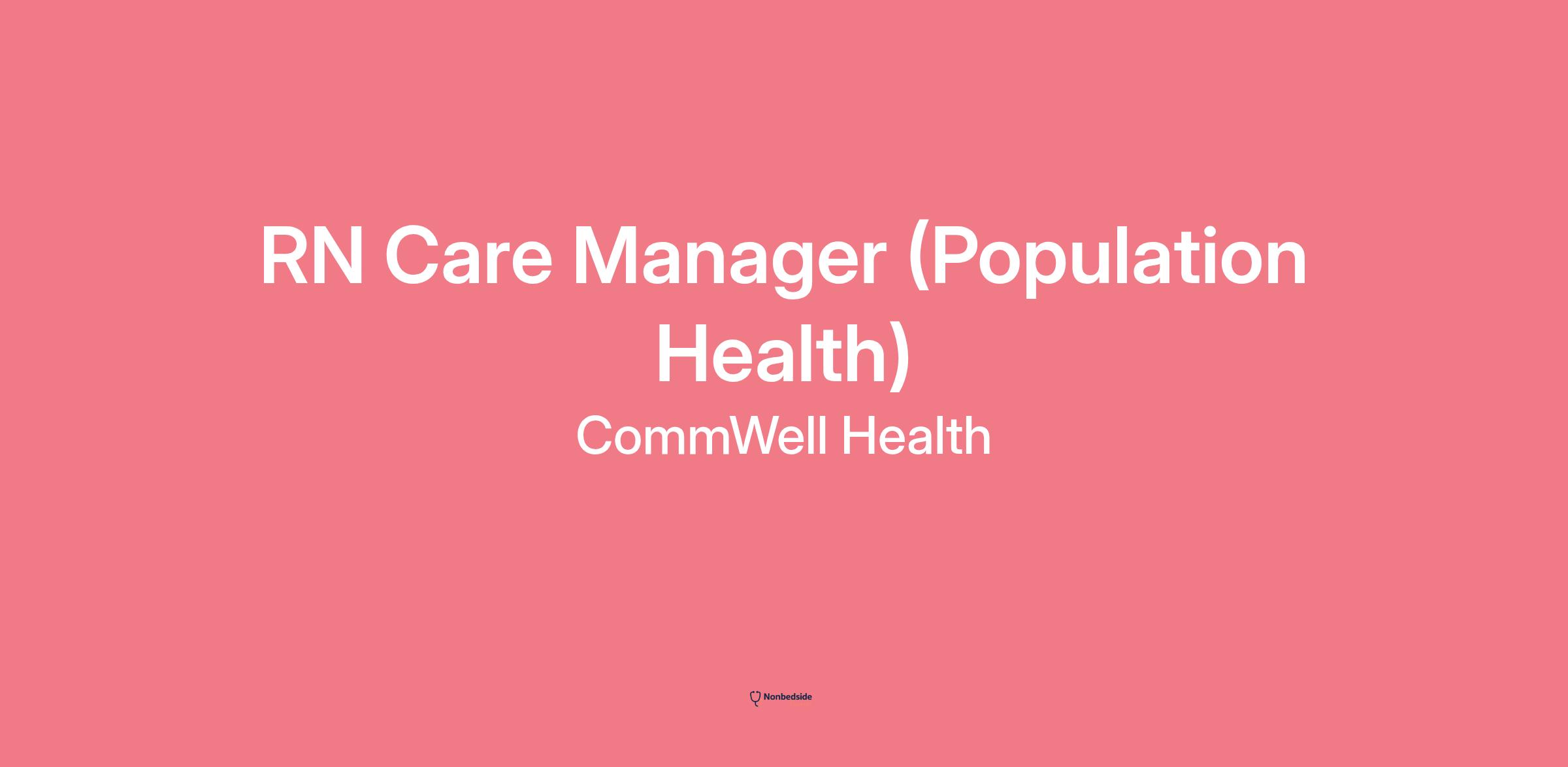 Join to apply for the RN Care Manager (Population Health) role at CommWell Health