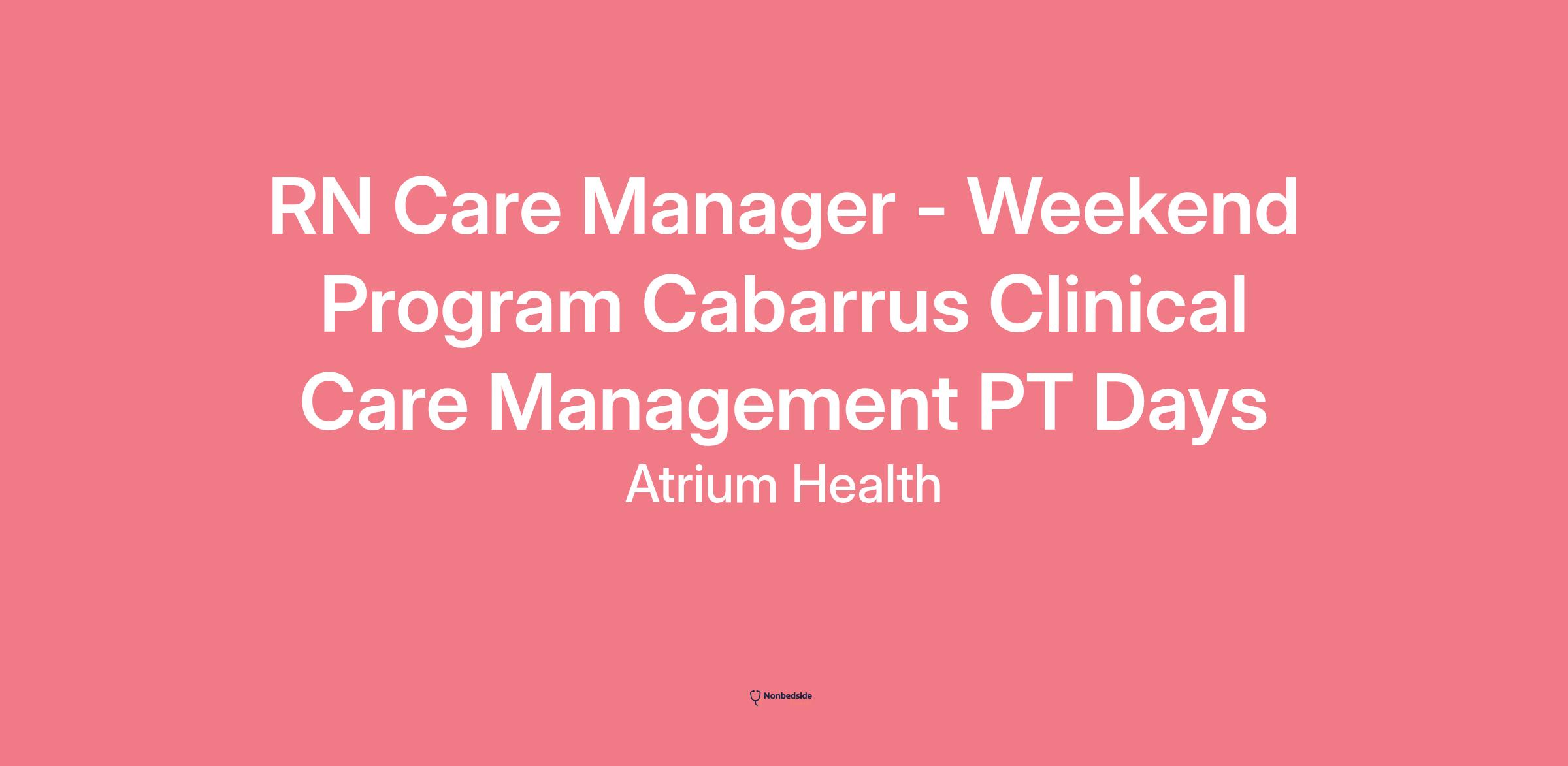 RN Care Manager - Weekend Program Cabarrus Clinical Care Management PT Days
