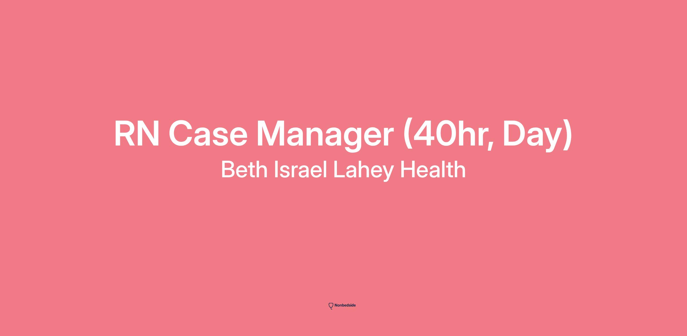 Join to apply for the RN Case Manager (40hr, Day) role at Beth Israel Lahey Health.