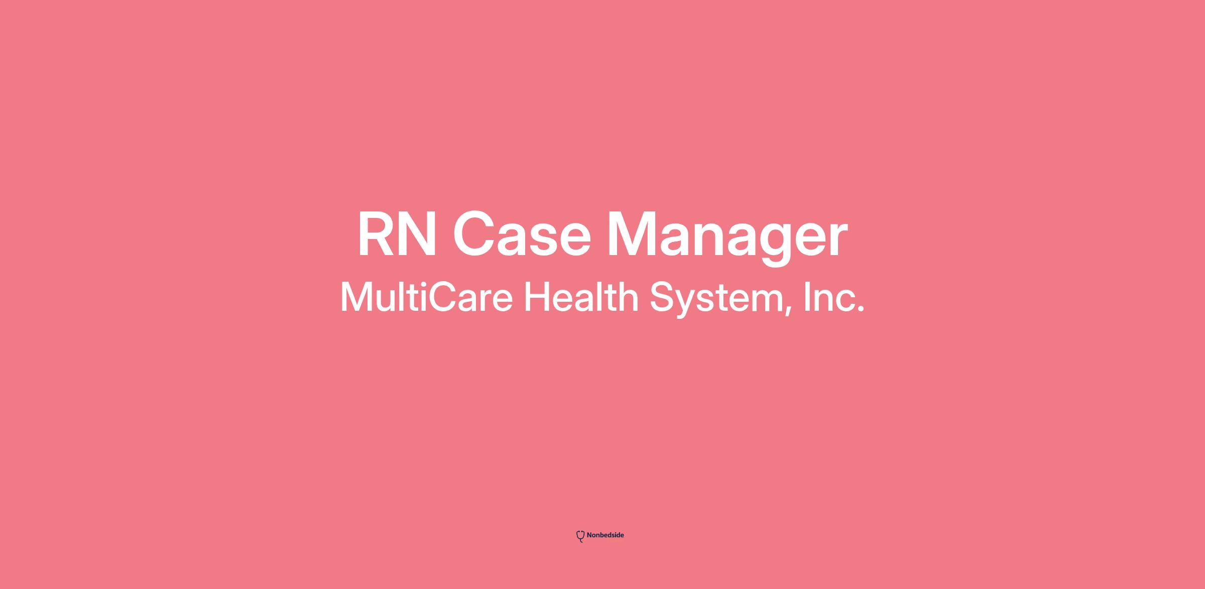 **You Belong Here.**At MultiCare, we strive to offer a true sense of belonging for all our employees. Across our health care network, you will find a dynamic range of meaningful careers, opportunities for growth, safe workplaces, and flexible schedules. We are connected by our mission - partnering and healing for a healthy future - and dedicated to the health and well-being of the communities we serve.**FTE:** 0.01, **Shift:** Per Diem, **Schedule:** variable**Position Summary**Were seeking an RN Care Manager to join our incredible hospital-based team. This is an excellent opportunity to utilize your specialized training, knowledge, and nursing care with a multidisciplinary approach. Its an exciting time to be a nurse at MultiCare. We are on a journey to become a best-in-class nursing organization. Together, we are creating an environment where nurses are owners in the clinical decision-making process, are well connected, have open communication with their colleagues, feel supported to develop professionally, and understand the future of nursing at MultiCare. **Responsibilities*** You will define, develop, and monitor standards of patient care and nursing practices* You will collect, trend and analyze data to identify best practices and performance improvements* You will ensure availability and appropriate allocation of human and material resources* Support successful collaboration between nursing, physicians, and other disciplines to achieve desired patient care outcome and department strategic plans* You will coordinate towards the overall operations of assigned units and the provision of resources* Facilitate optimal and cost-efficient patient care delivery**Requirements*** Bachelor's degree in Nursing, or obtained within five (5) years from the initial date of hire; RN with 15+ years of service or internal candidates hired before January 1, 2021 may be considered in satisfaction of this requirement in lieu of an education agreement* Advanced degree in Nursing (MSN, PhD, DNP, ARNP) preferred* Current Registered Nurse license in Washington State or Multistate License endorsement (MLS)* Current certification in specialty field preferred* Case Manager certification highly desirable* Three (3) years recent clinical experience in area of specialty preferred**Our Values**As a MultiCare employee, we'll rely on you to reflect our core values of Respect, Integrity, Stewardship, Excellence, Collaboration, Kindness and Joy. Our values serve as our guiding principles and impact every aspect of our organization, including how we provide patient care and what we expect from each other.* **Belonging:** We work to create a true sense of belonging for all our employees* **Mission-driven:** We are dedicated to our mission of partnering for healing and a healthy future and the patients and communities we serve* **Market leadership:** Washington state's largest community-based, locally governed health system* **Employee-centric:** Named Forbes Americas Best Employers by State for several years running* **Technology:** "Most Wired" health care system 15 years in a row* **Leading research:** MultiCare Institute for Research & Innovation, 40 years of ground-breaking, clinical and health services research in our communities* **Lifestyle:** Live and work in the Pacific Northwest - offering breathtaking water, mountains and forest at every turn**Pay and Benefit Expectations**We provide a comprehensive benefits package, including competitive salary, medical, dental and retirement benefits and paid time off. As required by various pay transparency laws, we share a competitive range of compensation for candidates hired into each position. The pay scale is $42.16 - $77.48 USD. However, pay is influenced by factors specific to applicants, including but not limited to: skill set, level of experience, and certification(s) and/or education. If this position is associated with a union contract, pay will be reflective of the appropriate step on the pay scale to which the applicants years of experience align.Associated benefit information can be viewed .MultiCare provides equal employment opportunity to all employees and job applicants. We do not tolerate discrimination or harassment based on race, color, religion, age, sex, national origin, disability status, genetic information, protected veteran status, sexual orientation, gender identity or expression or any other characteristic protected by federal, state or local laws. This policy applies to all terms and conditions of employment, including recruiting, hiring, placement, promotion, termination, layoff, recall, transfer, leaves of absence, compensation and training.If you are an external job applicant who requires reasonable accommodation in the job application process, please contact the Employee Resource Center (ERC) at 253-403-6947 and we will assist you with submitting a ticket to initiate your request for accommodation. If you are a current employee, you can submit an ERC ticket or call the ERC for assistance.