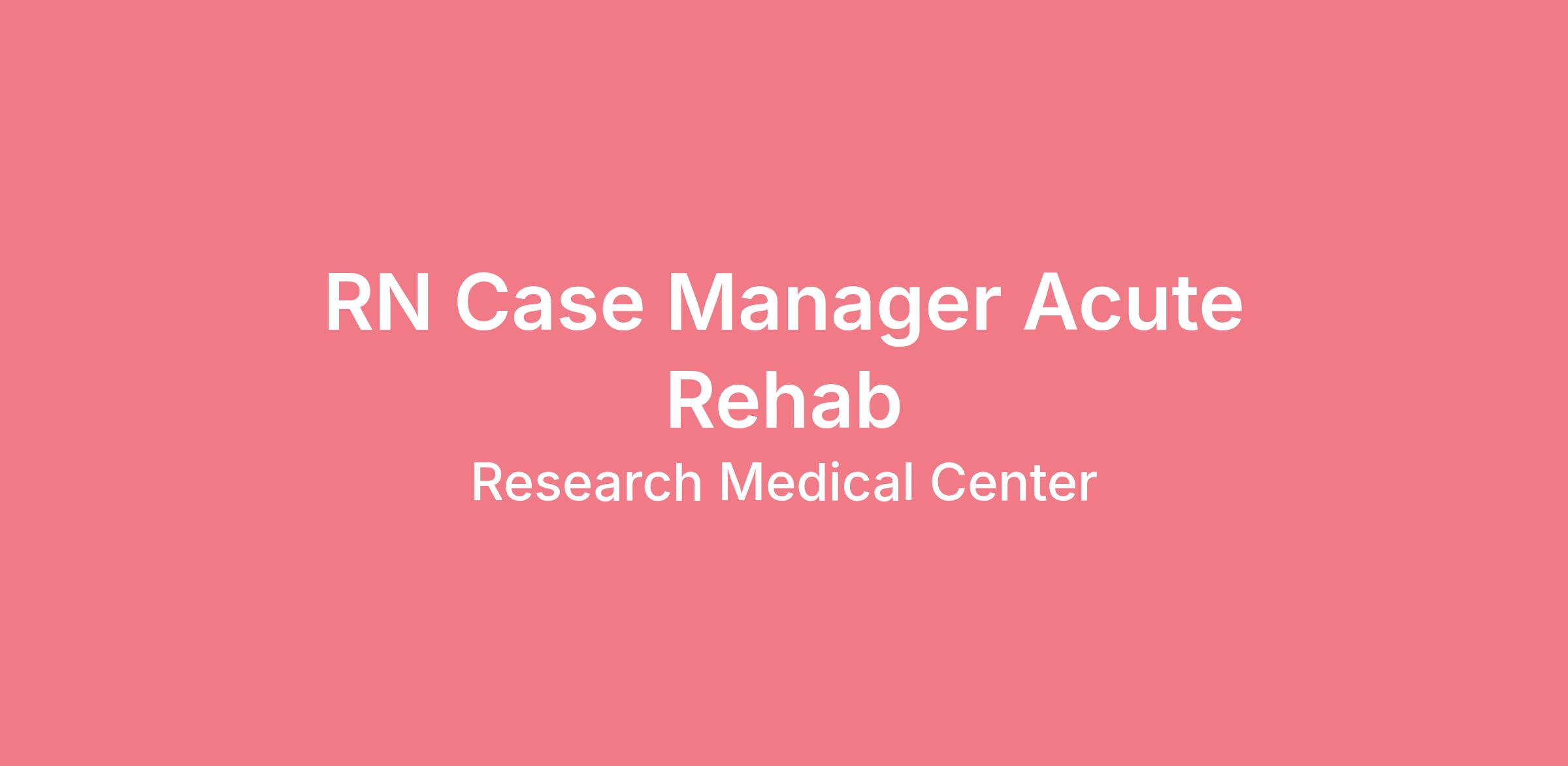 Are you looking for a place to deliver excellent care patients deserve? At Research Medical Center we support our colleagues in their positions. Join our Team as a(an) RN Case Manager Acute Rehab and access programs to assist with every stage of your career.