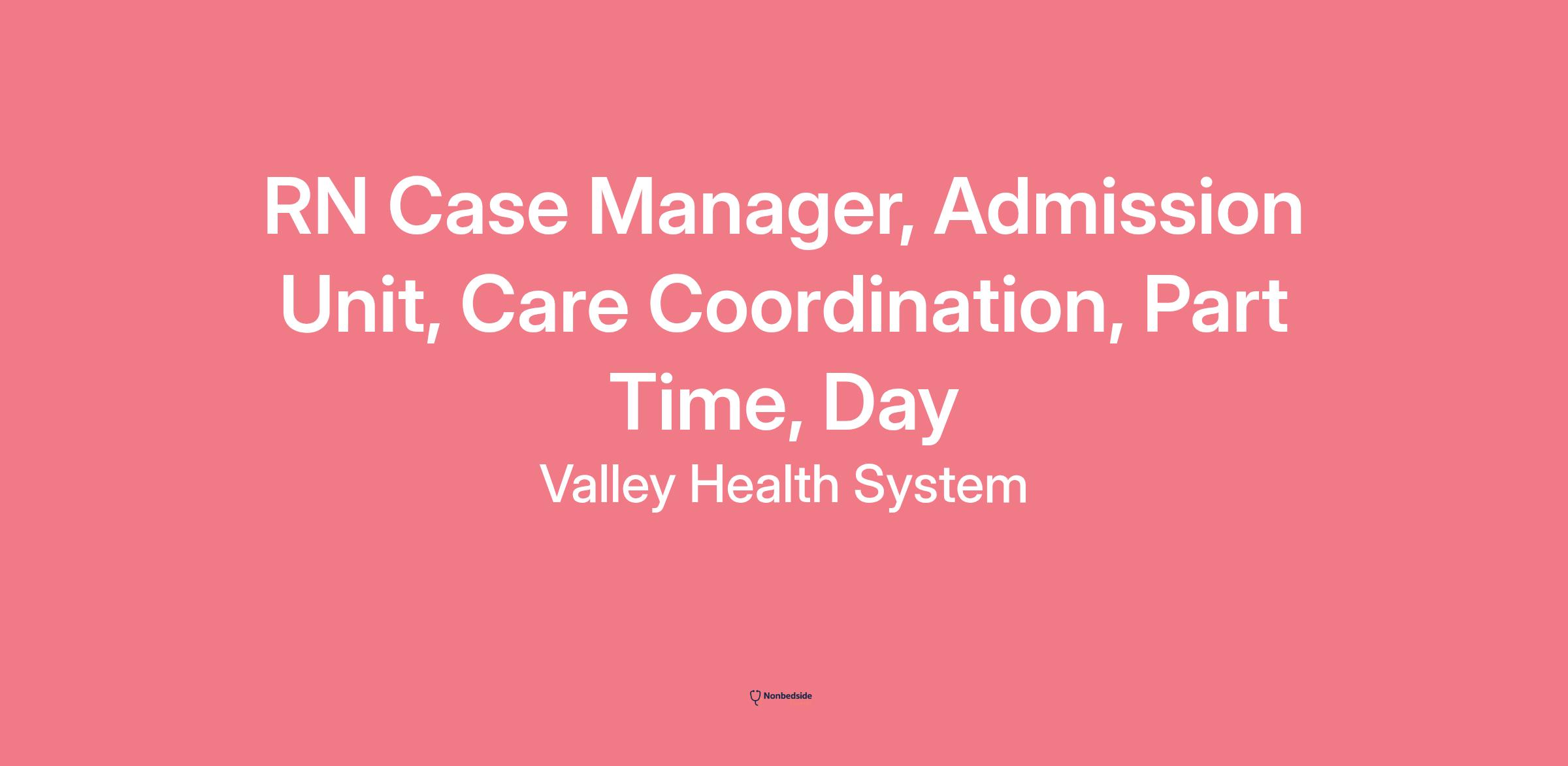 Overview POSITION SUMMARY: To coordinate and facilitate patient care through the Valley Hospital Health Care System as it relates to a multidisciplinary approach to patient care and utilization of resources.
