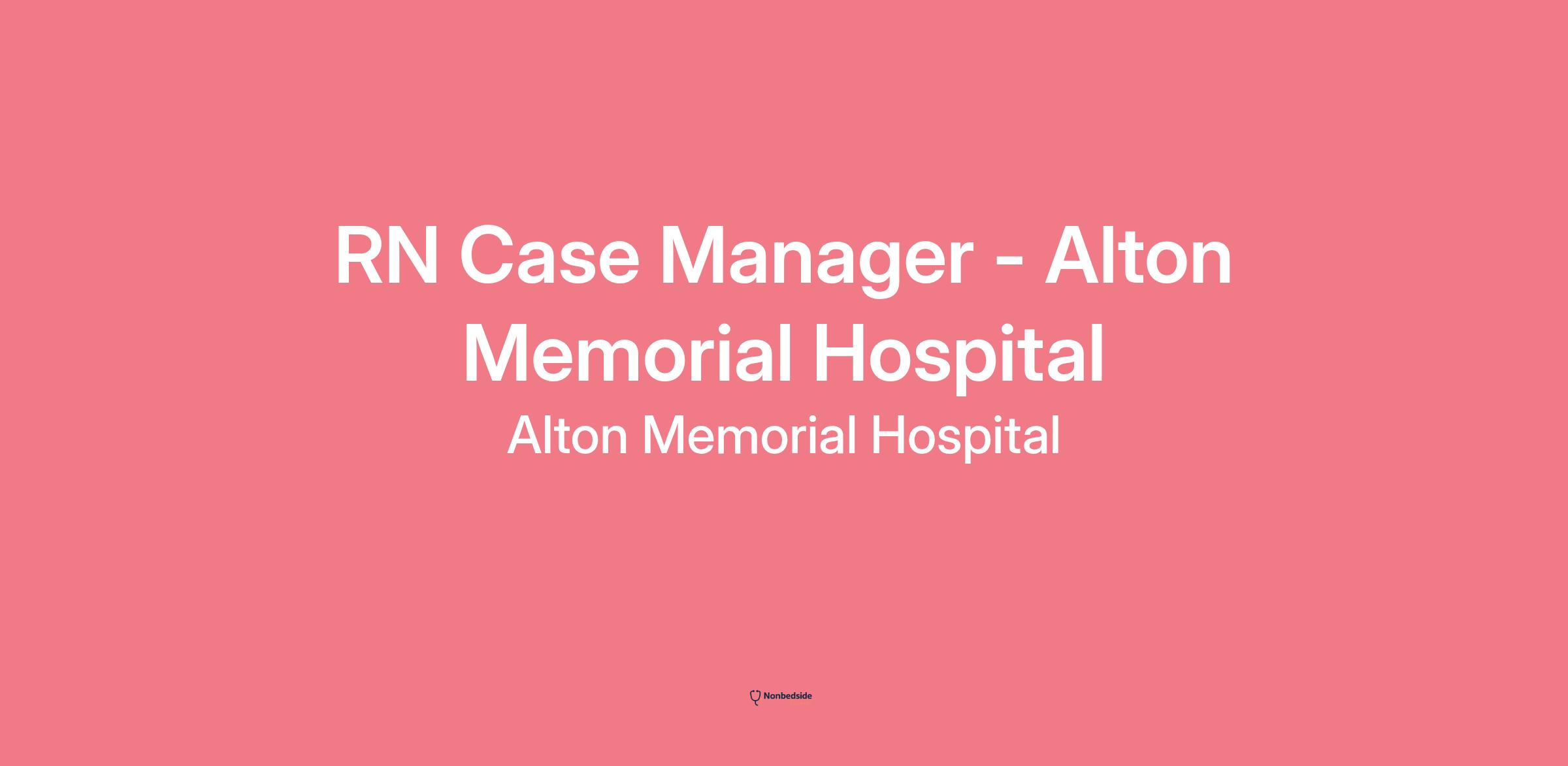 Apply for the RN Case Manager role at Alton Memorial Hospital.