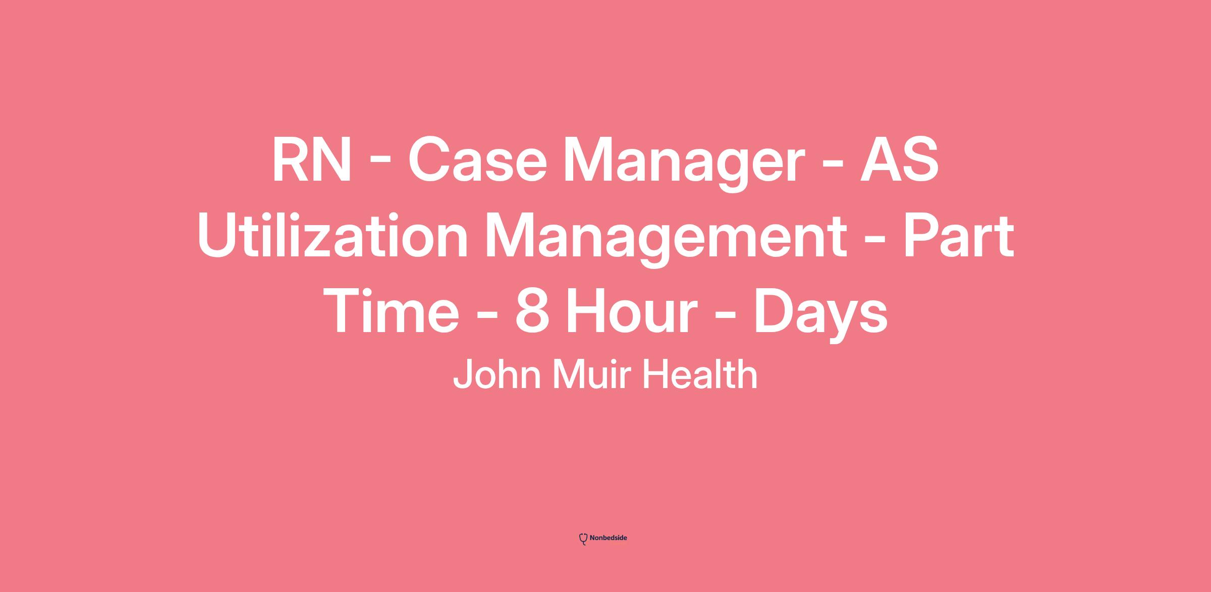 ## **Job Description:**The role of the inpatient case manager is one of patient advocate of appropriate utilization of resources. The inpatient case manager applies the process of assessment, planning, implementation, monitoring, evaluation and coordination of care to meet the patient’s health care needs through hospitalization and transition back to the community and does this in coordination with the interdisciplinary health team. The RN Case Manager is expected to function within the full scope of the nursing practice with specialized focus on care coordination, compliance, transition management, education, and utilization management.**Education:*** Bachelor's Degree Accredited School of Nursing Required**Experience:*** 3 years Nursing - Medical/Surgical Preferred ***or**** 3 years Nursing - Critical Care Preferred* 2 years Care Coordination - Case Management Preferred or Equivalent Work Experience**Certifications/Licensures:*** RN Registered Nursing - California Board of Nursing Required* BLS Basic Life Support - American Heart Association Required* ACM Accredited Case Manager - ACMA American Case Management Association ***or**** CCM Certified Case Manager - CCMC Commission for Case Manager Certification Strongly Preferred**Skills:*** Strong written and verbal communication skills.* Effectively motivates teams.* Strong knowledge of Medicare and Medi-Cal guidelines and benefit resources as applicable to hospitalization and transition planning.* Working know ledge of common diagnoses and procedures and the impact this w ill have to patients/families and their ability to manage their care outside of the hospital. Specialized know ledge may be required for certain areas of practice.* Knowledge of individual and family development over the life span, and the influences of cultural and spiritual values in health care.* General knowledge of commercial coverage plans and usually covered benefits. Strong understanding of various reimbursement models and impact to care delivery, patient management and reimbursements such as ACOs, DRGs, Full Risk, etc.* Strong understanding of the criteria, rules and regulations around Inpatient, Observation and Outpatient levels of patient management.* Strong know ledge of geriatrics and the impact to health and function in the aged as w ell as a working know ledge of chronic/progressive disease states such as CHF, COPD, Diabetes and End Stage Renal Disease, etc.* Clear understanding of the role of the inpatient Social Worker and Palliative Care Resources.* Ability to plan, organize, manage time and prioritize work in collaboration with others.* Ability to work independently and as a part of a multidisciplinary team.* Effective problem solving and conflict resolution skills.* Ability to work respectfully and creatively with clients of diverse functional abilities, social, economic, and cultural backgrounds to support both client autonomy and client safety.* Leadership skills to delegate and provide direction/guidance to staff and hold others accountable.* Able to learn and work in a variety of computer programs, including EPIC, Allscripts, InterQual, and Microsoft Outlook.Please post as a set rotation of Saturday through Monday (every weekend)## **Work Shift:**08.0 - 08:00 - 16:30 No Waive (United States of America)**Pay Range:**$84.77 - $115.51### ### Hourly### Offer amounts are based on demonstrated/relevant experience and/or licensure.Pay will be adjusted to the local market if hired outside of the Bay Area.Note: Positions at JMH which are exempt (not eligible for overtime) under the level of Manager are listed as hourly for compensation purposes on this posting. The work shift will contain the word ‘exempt’ on it.## **Scheduled Weekly Hours:**24**John Muir Health is a nationally recognized, not-for-profit health care organization east of San Francisco serving patients in Contra Costa, Alameda and southern Solano Counties. It includes a network of more than 1,000 primary care and specialty physicians and 6,300 employees, The health system’s facilities include John Muir Health, Walnut Creek Medical Center (554-bed acute care facility), which serves as Contra Costa County's only designated trauma center, and John Muir Health, Concord Medical Center (247-bed acute care facility). Together, they are recognized as top centers for neurosciences, orthopedic, cancer, cardiovascular, trauma, emergency, pediatric, and high-risk obstetrics care. Other areas of specialty include general surgery, robotic surgery, weight-loss surgery, rehabilitation and critical care. In February 2024, John Muir Health opened the Behring Pavilion, which is home to the UCSF-John Muir Health Jean and Ken Hofmann Cancer Center in Walnut Creek. This state-of-the-art facility brings cancer prevention, diagnosis, treatment, and care coordination into one location. Patients benefit from the expertise of top cancer specialists from John Muir Health and UCSF Health and have access to the latest treatment advances close to home.****John Muir Health also offers complete inpatient and outpatient behavioral health programs and services at our 73-bed fully accredited psychiatric hospital and outpatient center located in Concord. In addition, John Muir Health provides a number of primary care and outpatient services at 89 practice sites throughout the community and urgent care centers in Berkeley, Brentwood, Concord, San Ramon and Walnut Creek.****John Muir Health offers a collaborative, patient-centered health care environment with an emphasis on listening, explaining, and working together as a team, to help patients achieve their optimal health. We recognize those who exemplify excellence and reward them for contributing to our collective success. From individual to department to spontaneous recognition, Employee of the Month, Employee Suggestion Program rewards, Employee Success Sharing Program, and many more, we find unique ways to thank our employees for the outstanding efforts they make e