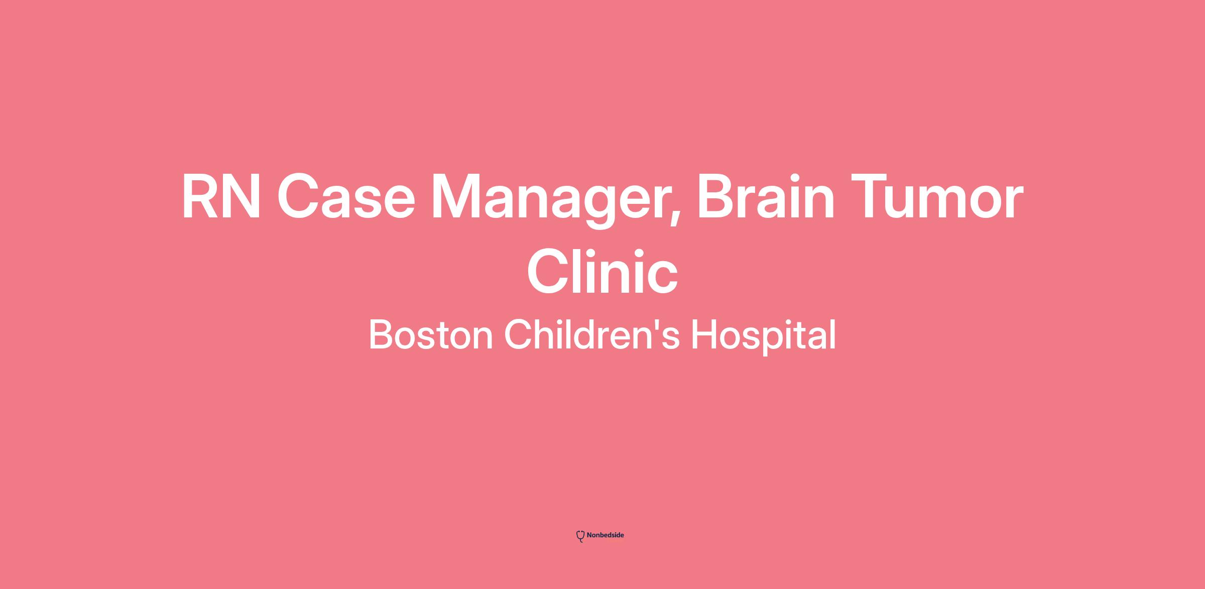 Department Summary:The outpatient RN Case Manager in the Brain Tumor Clinic at Boston Children’s functions as the clinical professional who coordinates the transition from hospital to home or facilities, based on patient need. The RN Case Manager performs clinical assessments to determine options for patients based on clinical need as well as insurance options. They will also perform clinical assessments for services including skilled nursing services, home health aides and personal care attendants needed postoperatively. They will collaborate with and are part of the multidisciplinary team, including the Neurosurgical team, who ensure patients have the services necessary for our patients to remain in the communities where they live.