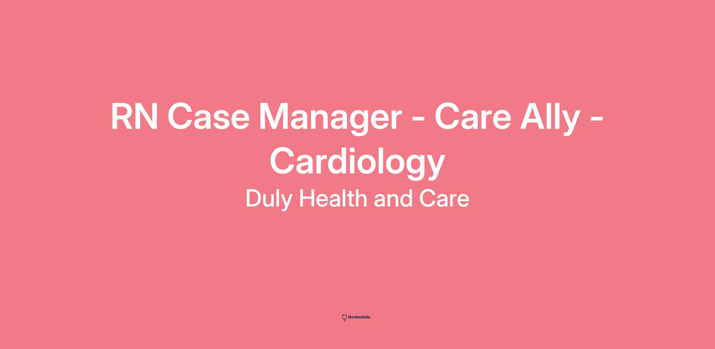 RN Case Manager - Care Ally - Nephrology Join to apply for the RN Case Manager - Care Ally - Nephrology role at Duly Health and Care .