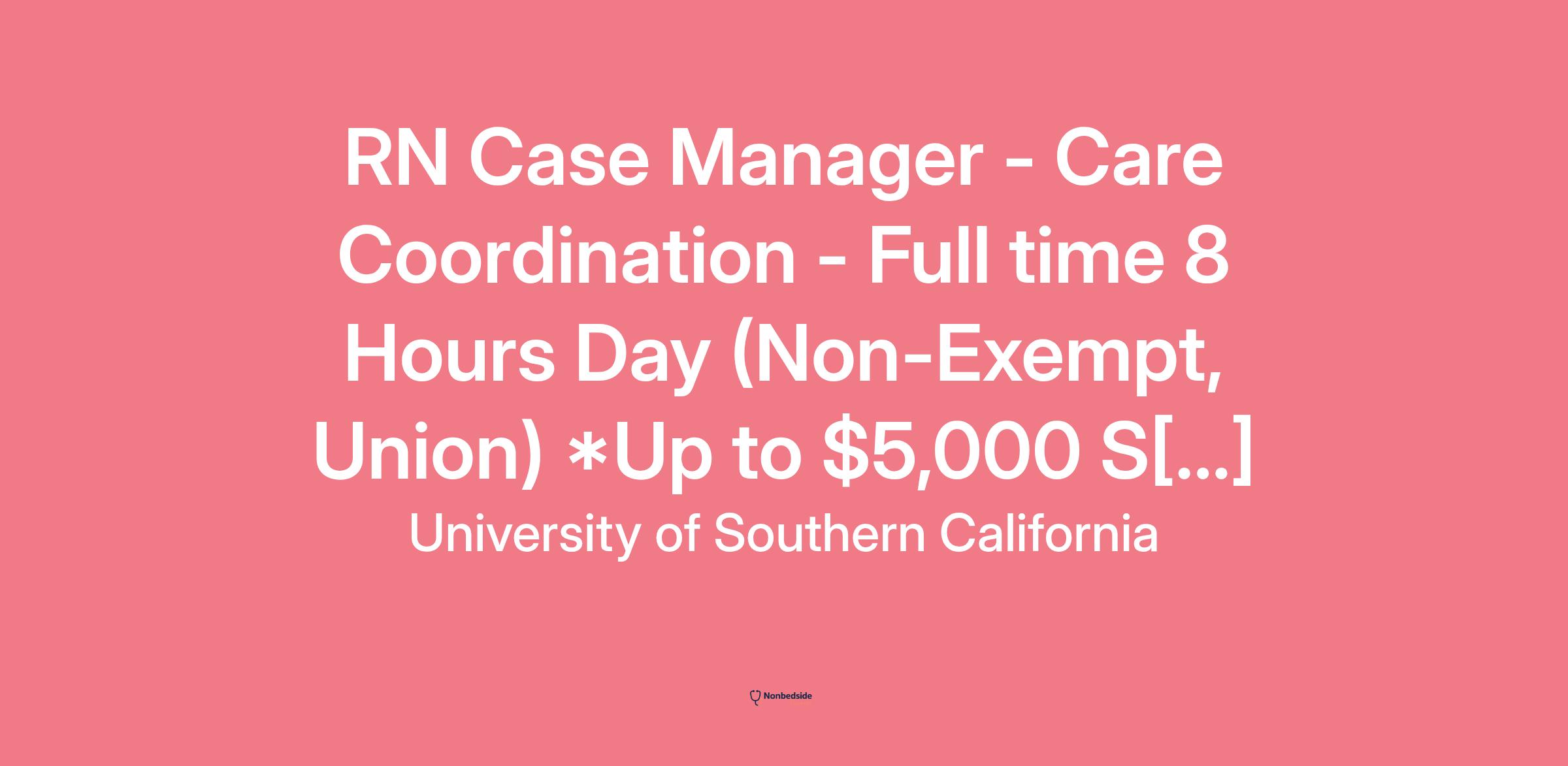 RN Case Manager - Care Coordination - Full time 8 Hours Day (Non-Exempt, Union) Up to $5,000 Sign On Bonus