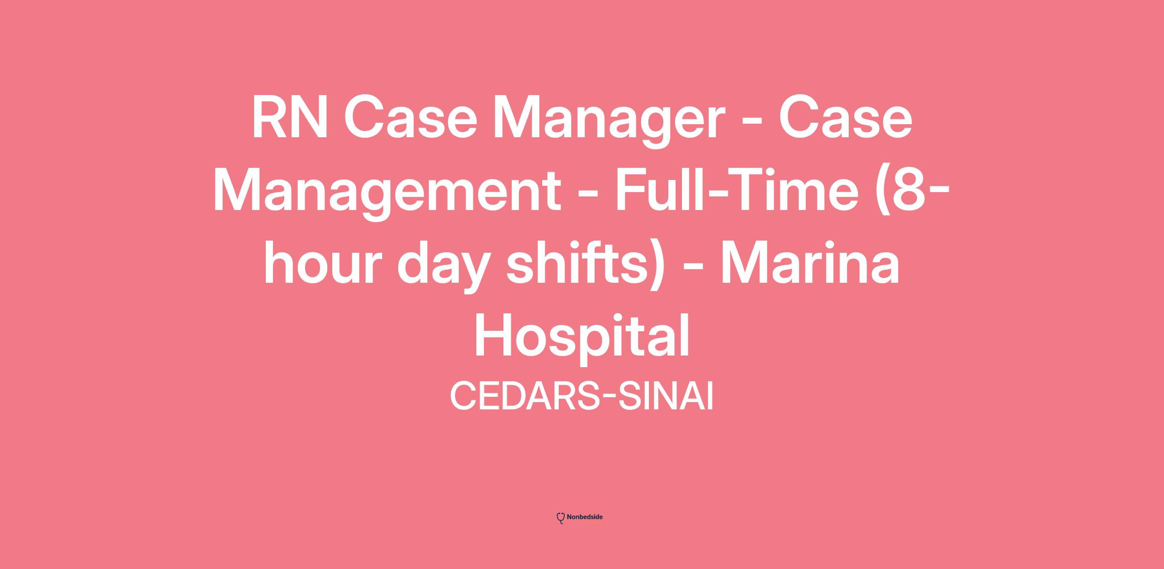 Working Title : RN Case Manager - Case Management - Full-Time (8-hour day shifts) - Marina Hospital