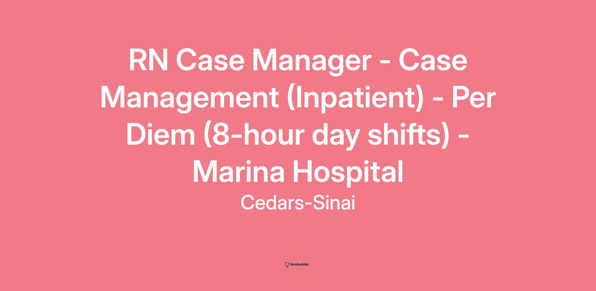 **Working Title** : RN Case Manager - Case Management (Inpatient) - Per Diem (8-hour day shifts) - Marina Hospital