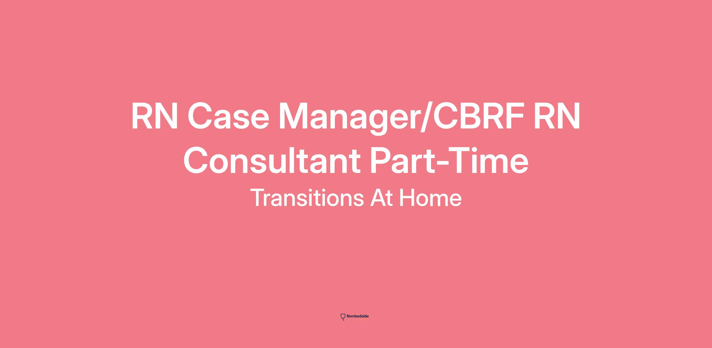 Join to apply for the RN Case Manager/CBRF RN Consultant Part-Time role at Transitions At Home