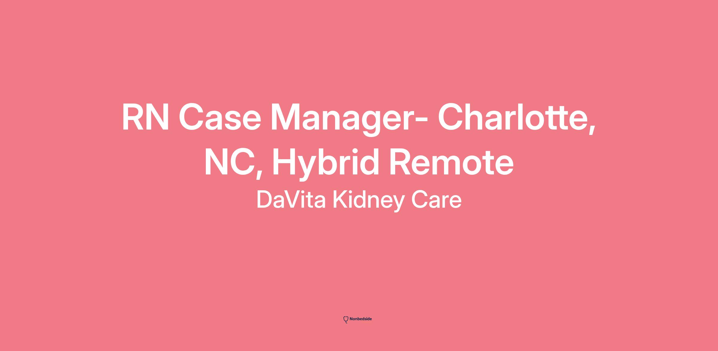 DaVita Kidney Care is looking for a Full‑Time RN Case Manager to join our Charlotte, NC region. This role supports patients with complex chronic kidney disease (CKD) or end‑stage kidney disease (ESKD) by coordinating care, addressing medical, social, emotional, and financial needs, and ensuring quality, cost‑effective care across the care continuum.