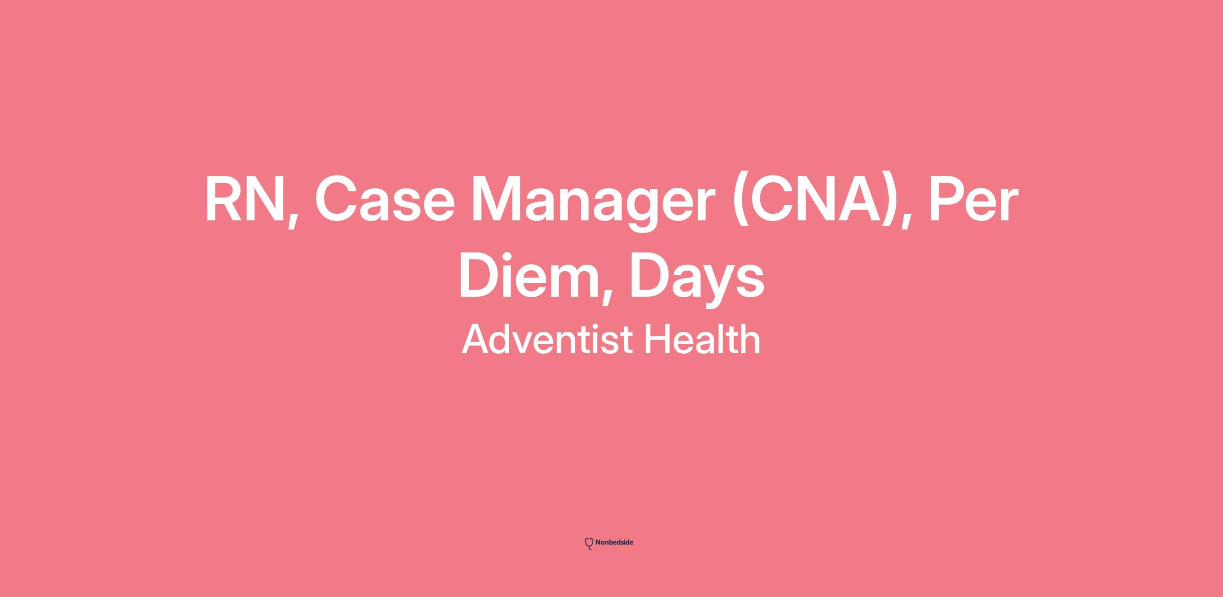 RN, Case Manager (CNA), Per Diem, Days at Adventist Health