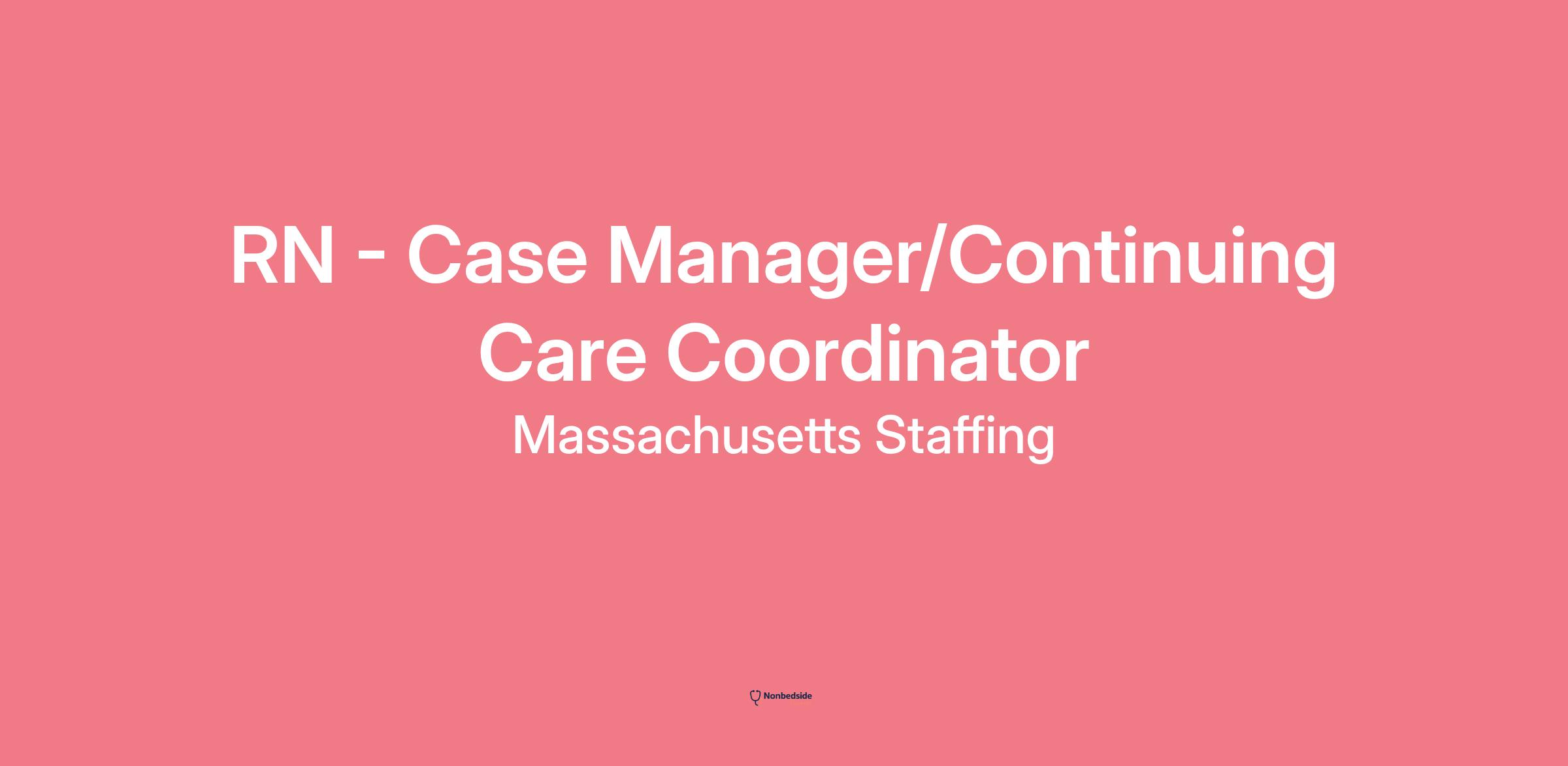 When you join the growing BILH team, you're not just taking a job, you're making a difference in people's lives. Use 2170 - RN Case Manager - Continuing Care Coordinator Job Description Job Description: REGISTERED NURSE Pay Range: $36.41 - $74.59 This position is covered by a collective bargaining agreement. The pay range listed for this position is the base hourly wage range the organization reasonably and in good faith expects to pay for this position at this time. The pay range for this position is established and governed by the terms of the applicable collective bargaining agreement. Employees hired into this position will receive compensation consistent with the terms of the applicable collective bargaining agreement. As a health care organization, we have a responsibility to do everything in our power to care for and protect our patients, our colleagues and our communities. Beth Israel Lahey Health requires that all staff be vaccinated against influenza (flu) as a condition of employment. More than 35,000 people working together. Nurses, doctors, technicians, therapists, researchers, teachers and more, making a difference in patients' lives. Your skill and compassion can make us even stronger. Equal Opportunity Employer/Veterans/Disabled