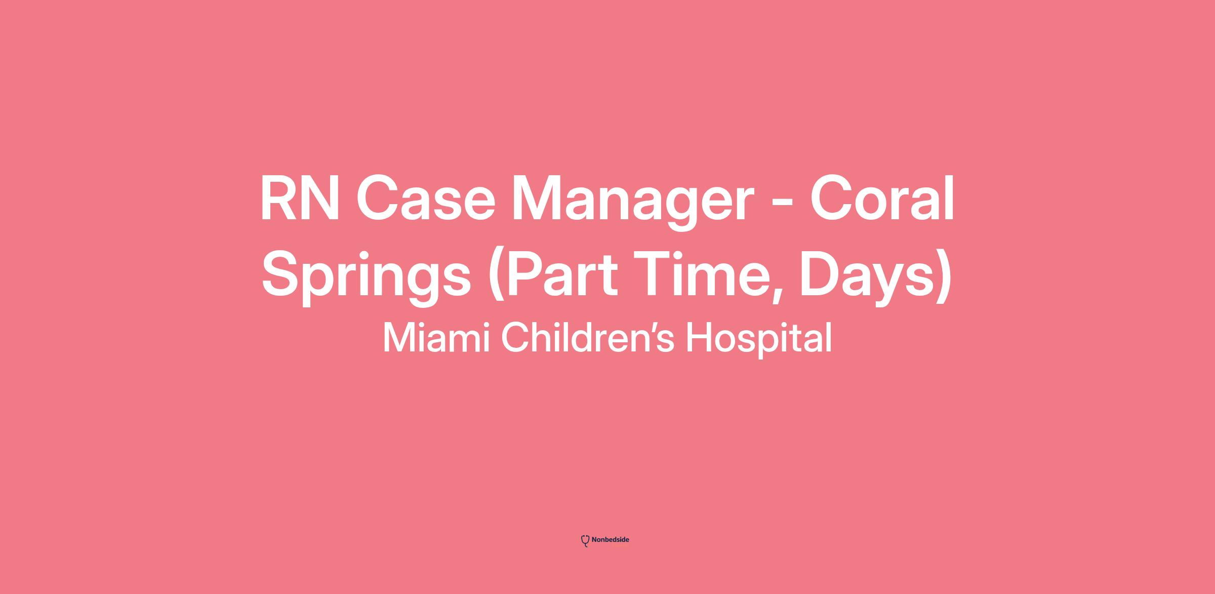 Job Description - RN Case Manager - Coral Springs (Part Time, Days) (300434)