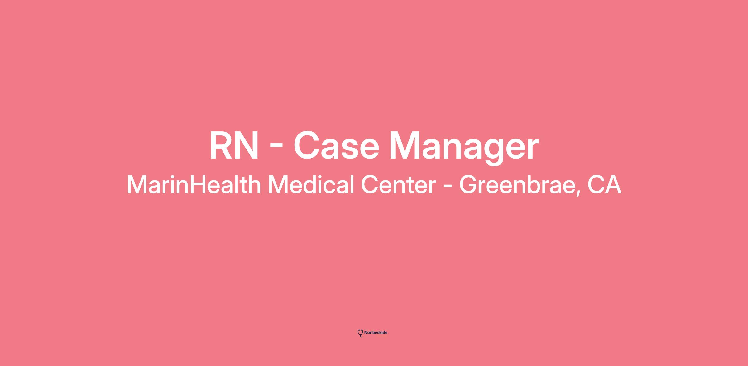 Client Name MarinHealth Medical Center - Greenbrae, CA Job Type Travel Offering Nursing Profession RN Specialty Case Manager Job ID 34444102 Job Title RN - Case Manager Weekly Pay $3055.0
