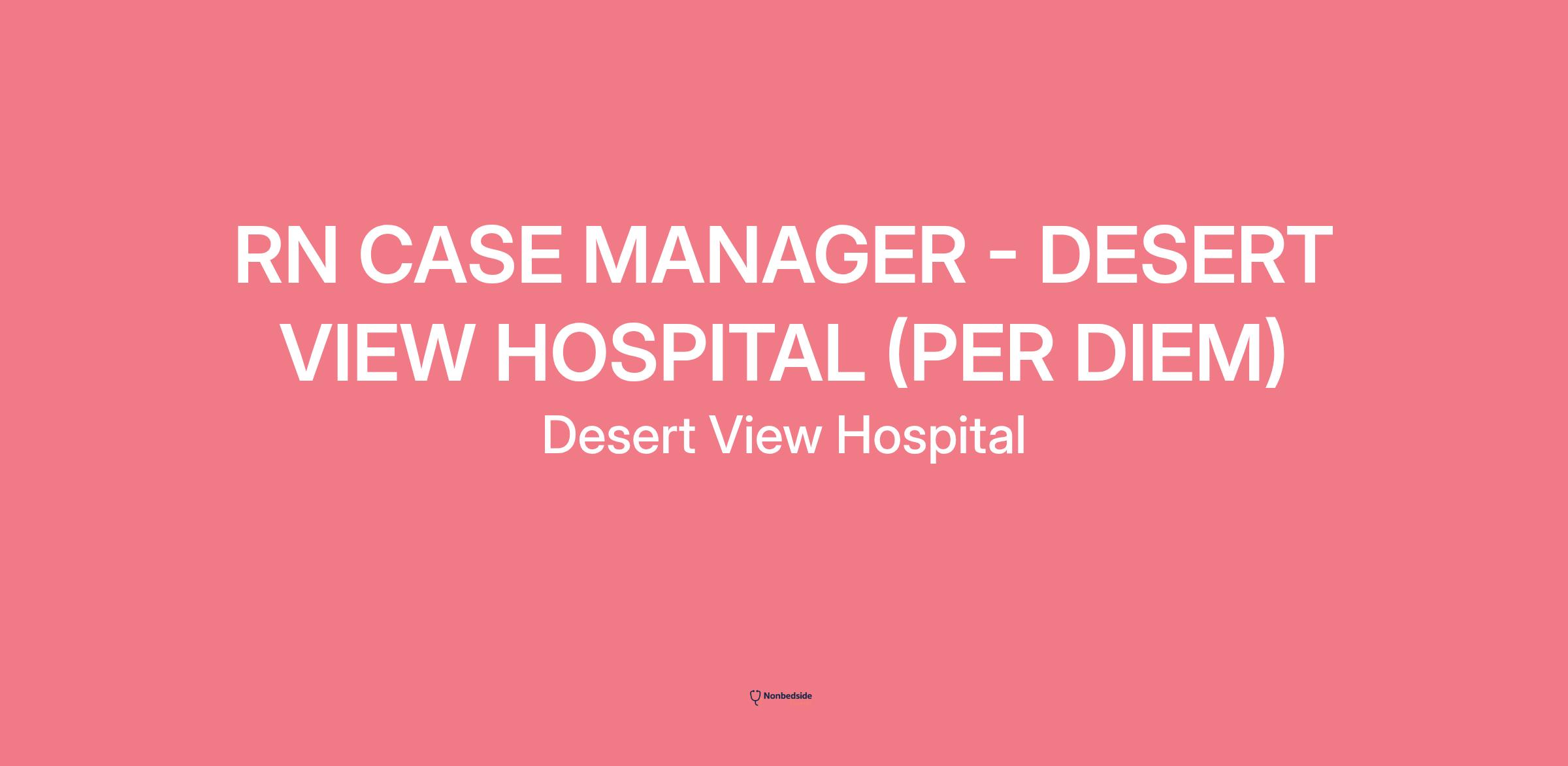 Responsibilities Desert View Hospital is a 25-bed, acute care hospital set in a rural community. Desert View provides safe and competent nursing care for patients in accordance with facility policies, standards, and philosophy. We provide professional leadership and support to the healthcare team. The concepts of Patient Centered Care will provide the foundation for all nursing care. Demonstrates Service Excellence standards at all times.