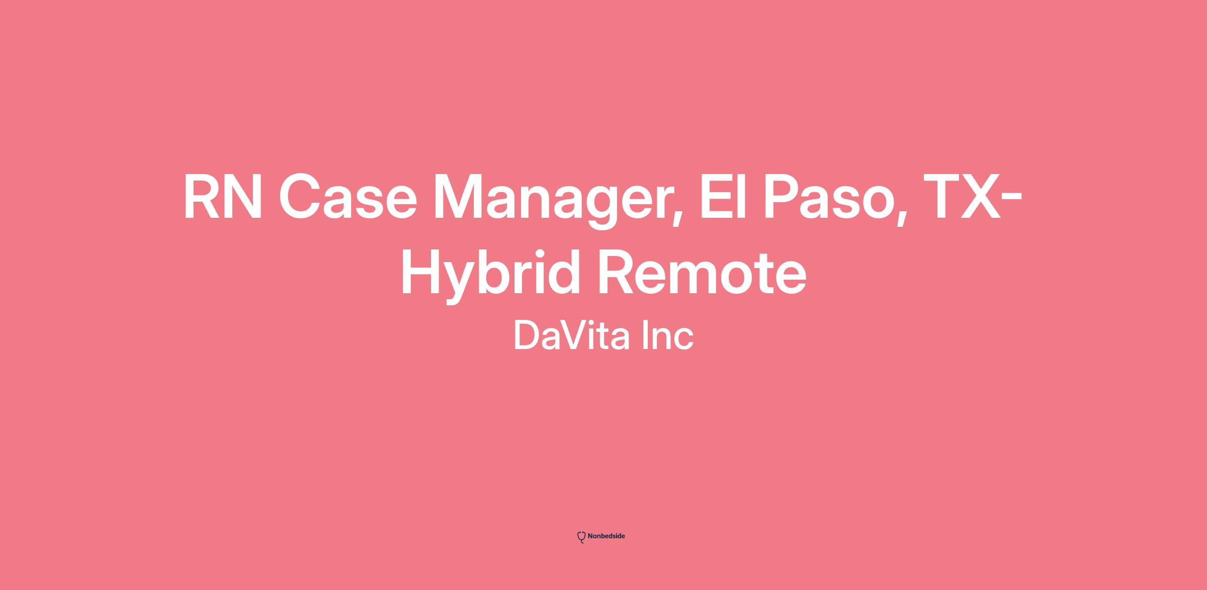 DaVita Integrated Kidney Care (IKC) is looking for a Full-Time RN Case Manager (RN) in El Paso, TX. As a DaVita Integrated Kidney Care Registered Nurse (RN) Case Manager you will support some of our most complex patients, assisting them in navigating a challenging healthcare system. Through medical record review and consultation, you will identify the medical, social, emotional, and financial needs of your patients with CKD/ESKD and implement appropriate interventions. You'll work autonomously and in collaboration with all members of the healthcare team to coordinate and facilitate quality, consistent, cost-effective care.