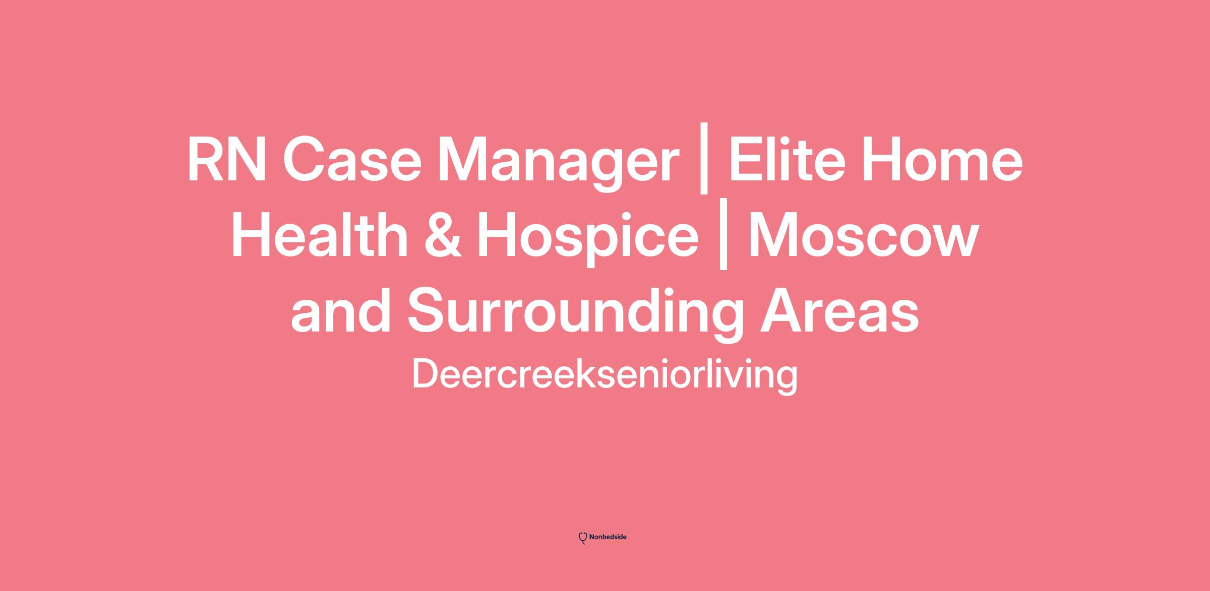 RN Case Manager | Elite Home Health & Hospice | Moscow and Surrounding Areas page is loaded RN Case Manager | Elite Home Health & Hospice | Moscow and Surrounding Areas Apply locations Remote, Idaho time type Full time posted on Posted 30+ Days Ago job requisition id JR48483 Elite is seeking compassionate and dedicated nurses to join our team in providing exceptional home health and hospice care. The agency is driven by our CAPLICO core values - Celebration, Accountability, Passion for Learning, Love One Another, Intelligent Risk Taking, Customer Second, and Ownership. These principles guide our commitment to delivering high-quality, personalized care that allows patients to remain in the comfort of the own homes. As a nurse with Elite, you'll play a vital role in "Keeping Our Community Home", fostering meaningful connections, and ensuring patients receive the best possible care. Join us in making a difference in the lives of those we serve, while embracing a culture of compassion, respect, and excellence.