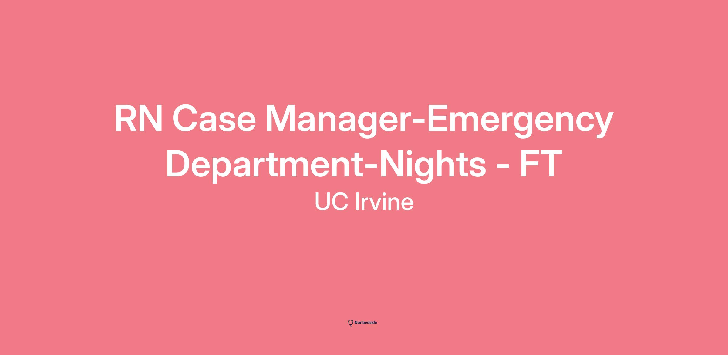 RN Case Manager-Emergency Department-Nights - FT UCI Health is the clinical enterprise of the University of California, Irvine, and the only academic health system based in Orange County. UCI Health is comprised of its main campus, UCI Medical Center, a 459-bed, acute care hospital in Orange, Calif., four hospitals and affiliated physicians of the UCI Health Community Network in Orange and Los Angeles counties and ambulatory care centers across the region.