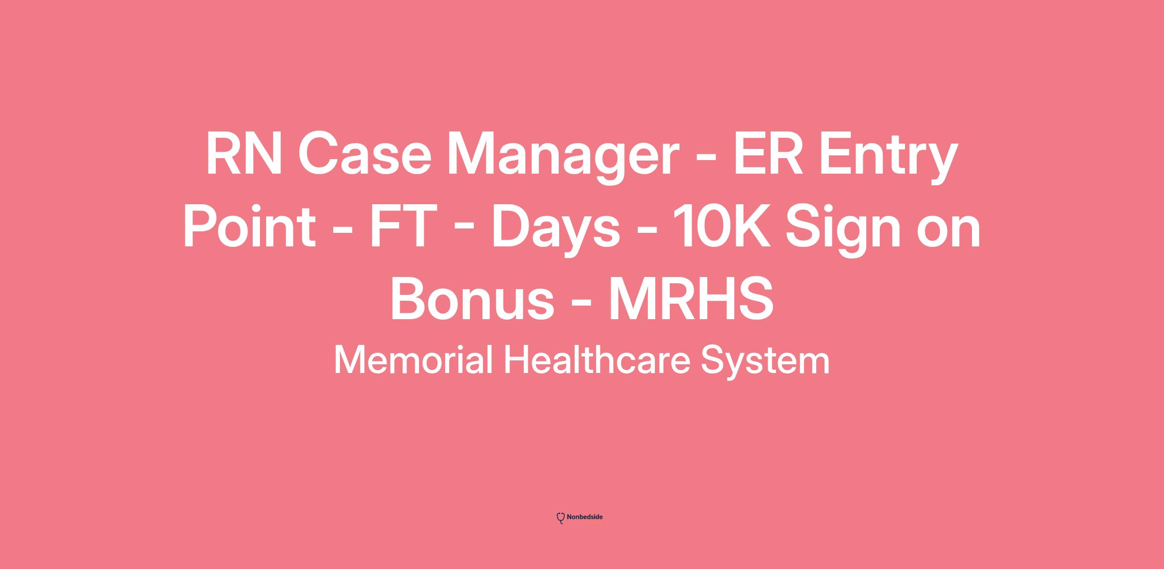 RN Case Manager - ER Entry Point - FT - Days (Friday - Monday) - 10K Sign on Bonus - MRHS