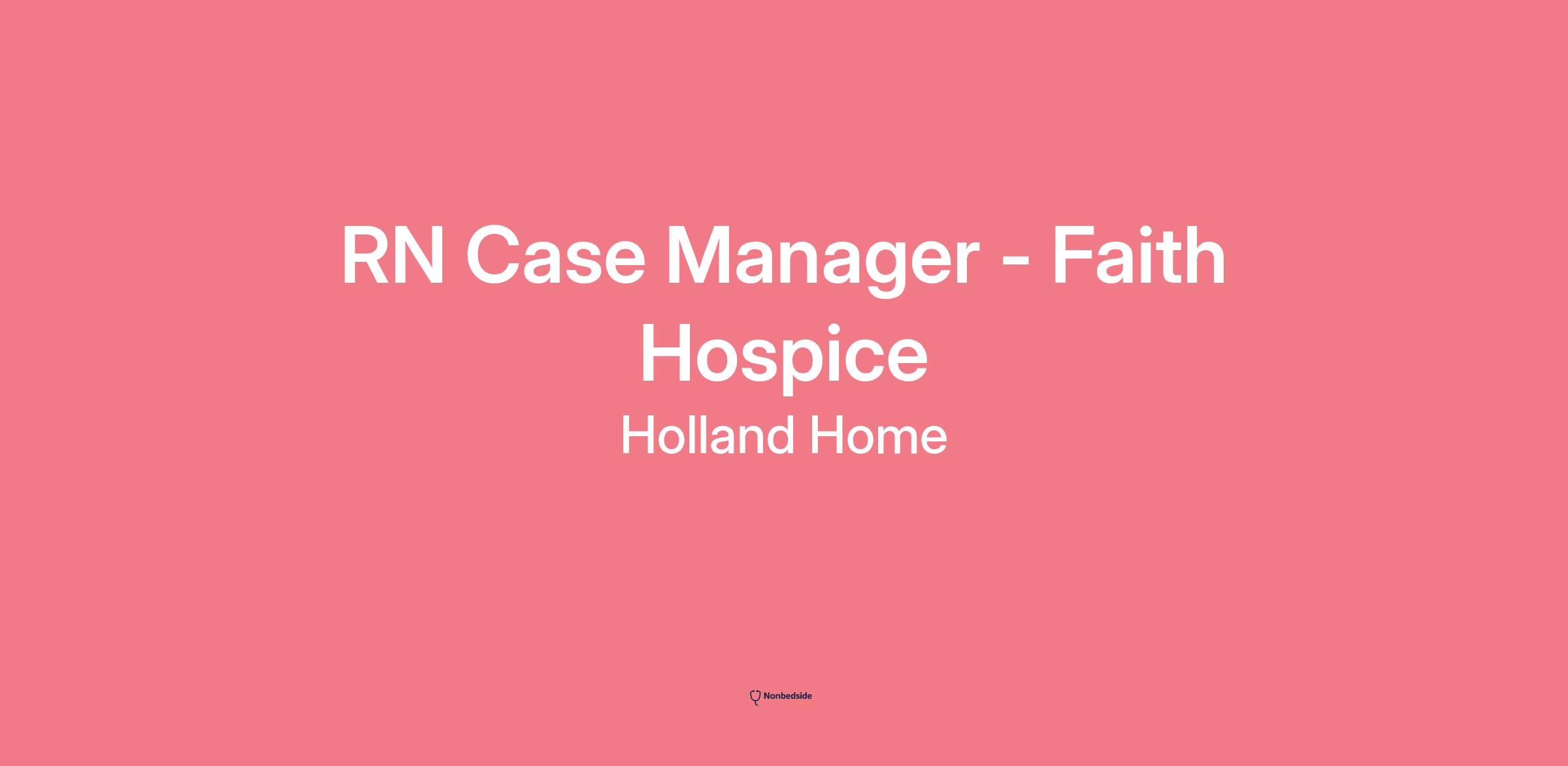 Overview RN Hospice Case Manager — Faith Hospice has a unique opportunity for an RN who feels the call to serving those patients at end of life and the opportunity to work as an essential part of an interdisciplinary health care team who all share this very rare and special gift.