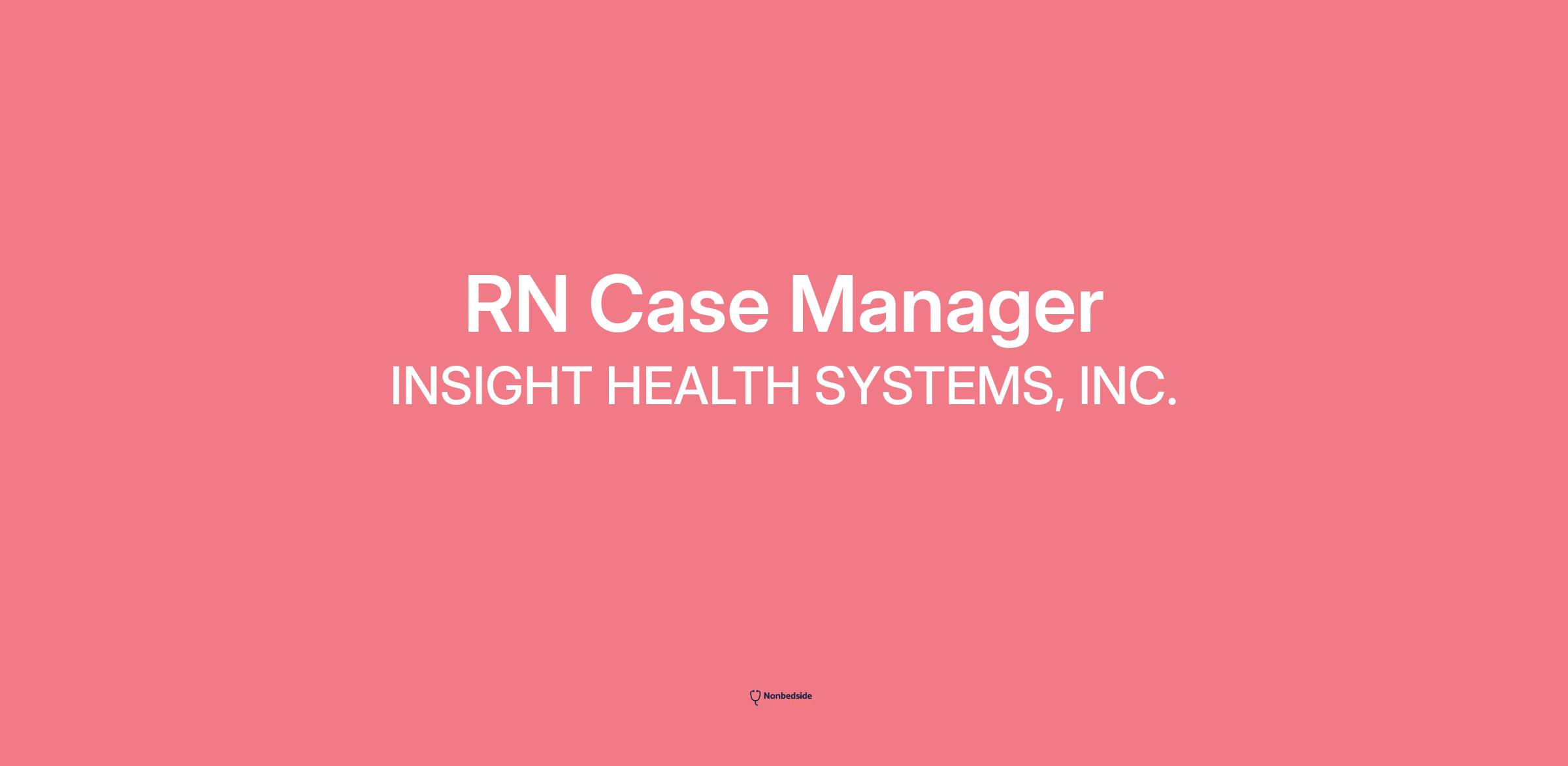 Join to apply for the RN Case Manager role at Insight Health Systems