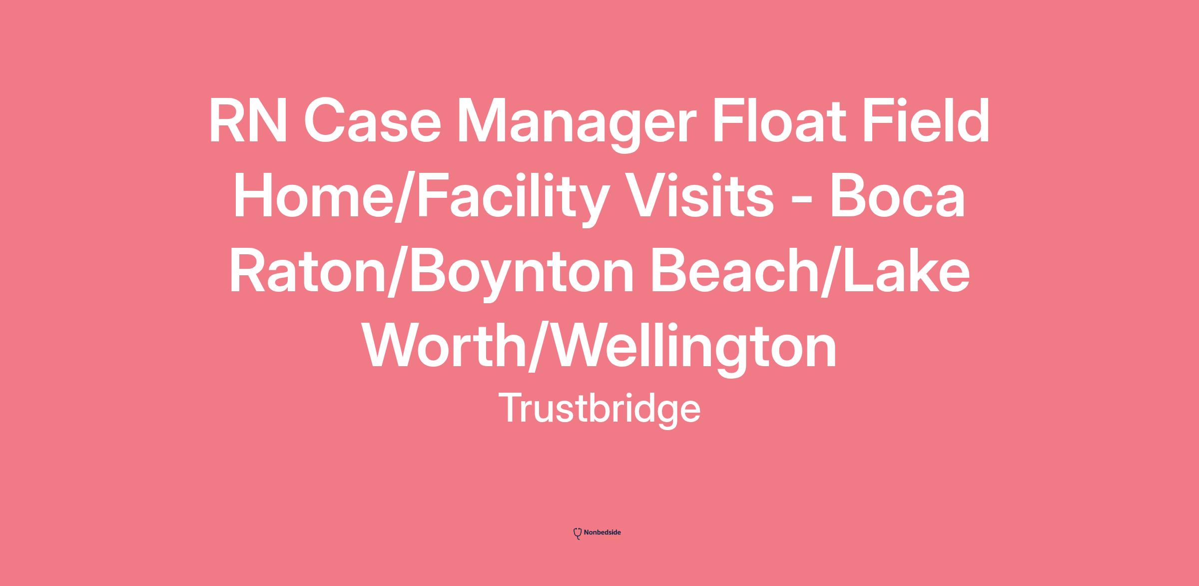 RN Case Manager Float Field Home/Facility Visits - Boca Raton/Boynton Beach/Lake Worth/Wellington Join to apply for the RN Case Manager Float Field Home/Facility Visits - Boca Raton/Boynton Beach/Lake Worth/Wellington role at Trustbridge