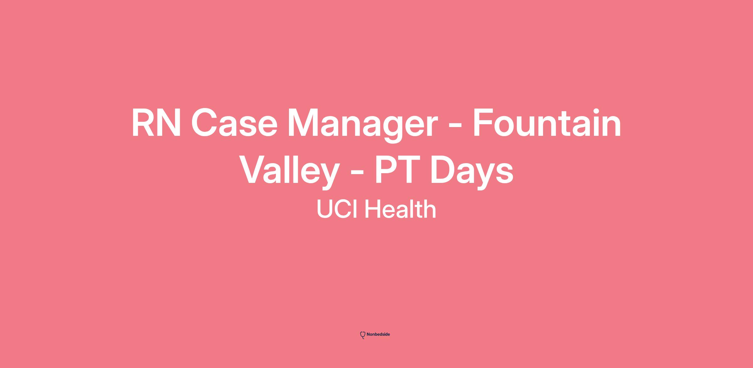 Join to apply for the RN Case Manager - Fountain Valley - PT Days role at UCI Health .