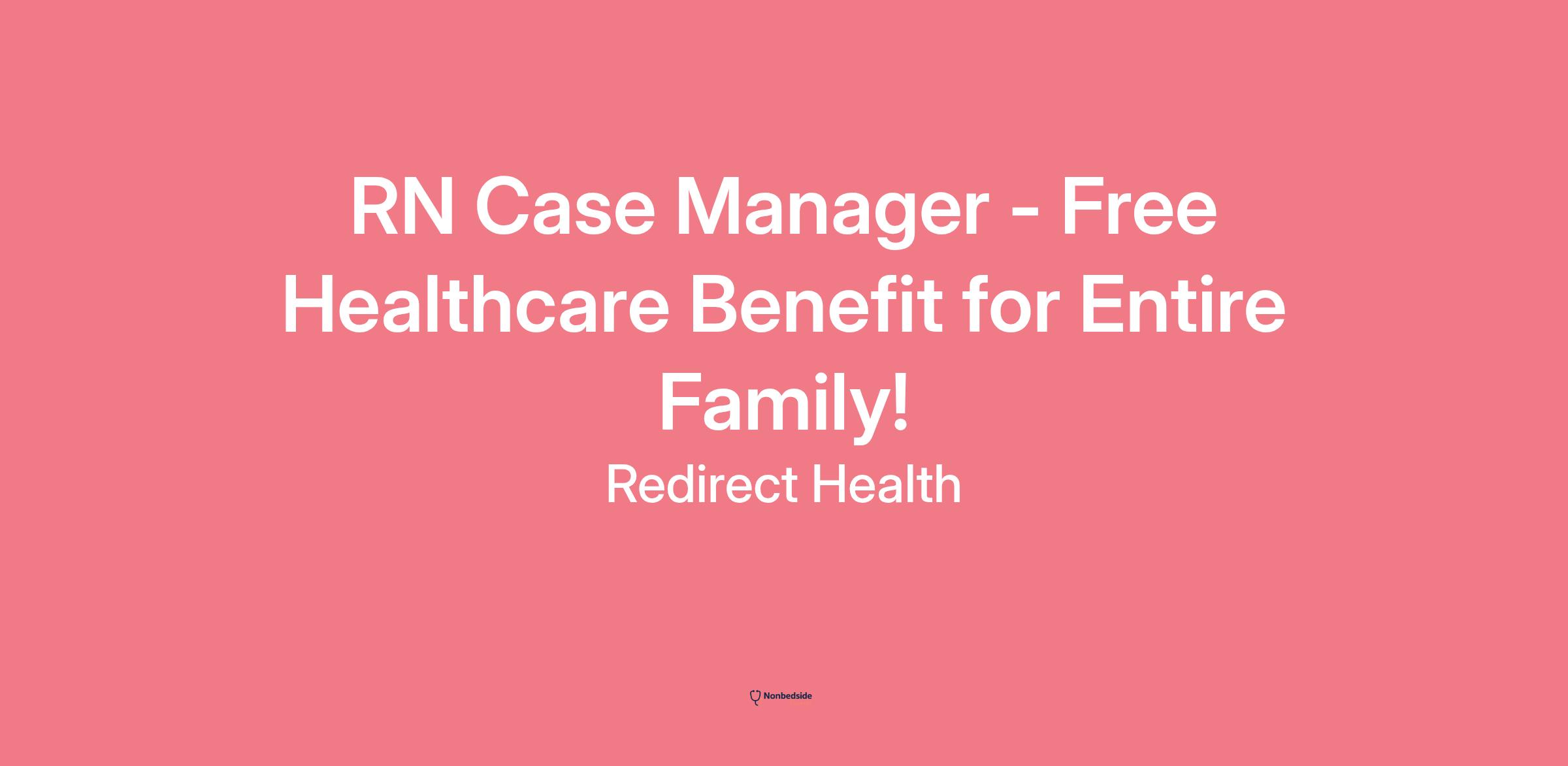 RN Case Manager - Free Healthcare Benefit for Entire Family! At Redirect Health, we’re on a mission to make healthcare accessible and affordable for everyone. We are currently accepting applications for RN, Case Manager roles.