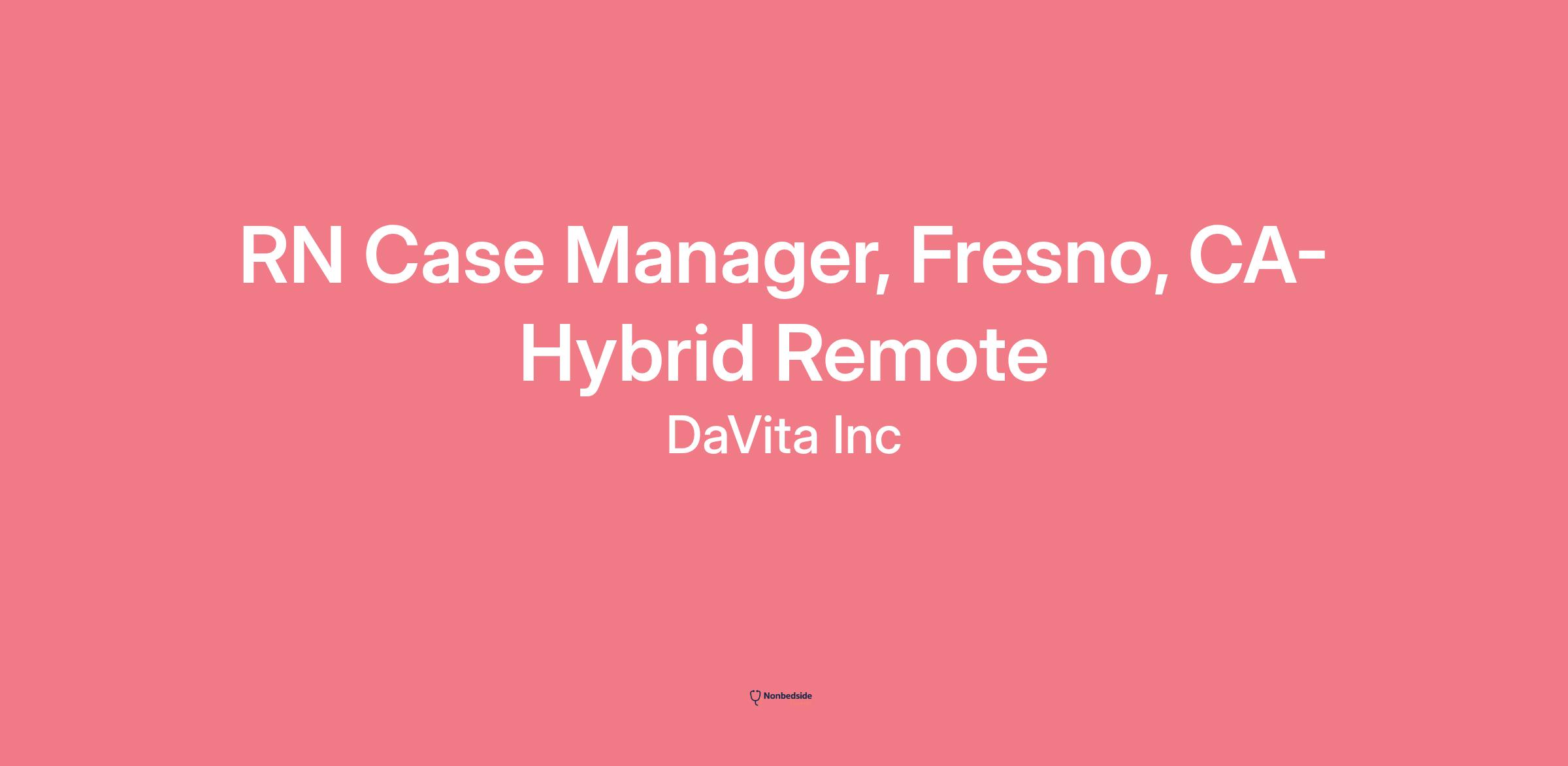 DaVita Integrated Kidney Care (IKC) is looking for a Full-Time RN Case Manager (RN) to join us in Fresno, CA. As a DaVita Integrated Kidney Care Registered Nurse (RN) Case Manager you will support some of our most complex patients, assisting them in navigating a challenging healthcare system. Through medical record review and consultation, you will identify the medical, social, emotional, and financial needs of your patients with CKD/ESKD and implement appropriate interventions. You'll work autonomously and in collaboration with all members of the healthcare team to coordinate and facilitate quality, consistent, cost-effective care.