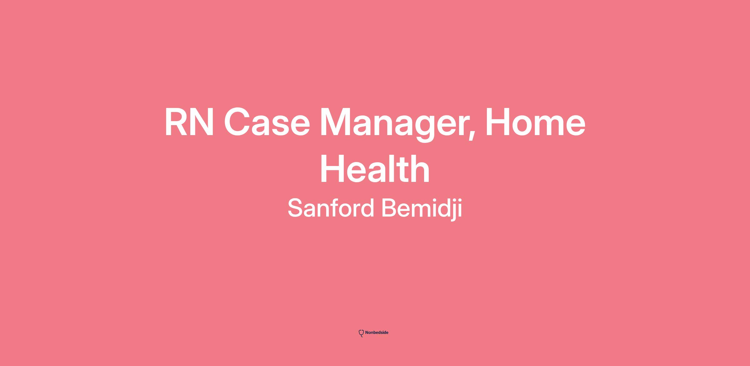 # Careers With PurposeRN Case Manager, Home Health page is loaded## RN Case Manager, Home Healthlocations: SD, Rapid Citytime type: Part timeposted on: Posted Yesterdayjob requisition id: R-0239924**Sanford Health is one of the largest and fastest-growing not-for-profit health systems in the United States. We’re proud to offer many development and advancement opportunities to our nearly 50,000 members of the Sanford Family who are dedicated to the work of health and healing across our broad footprint.**Work Shift:Day (United States of America)Scheduled Weekly Hours:20Salary Range: 36.00 - 51.00**Union Position:**No**Department Details**We are a five star agency servicing the Rapid City area within 25-30 minute radius of downtown. We provide high skill level care to our patients and have a close team with high level communication skills.**Summary**Integrates health care for clients from pre-admission to post discharge. This is accomplished through the coordination and sequencing of the client’s care. Integration enhances patient/resident flow and interdisciplinary communication promotes early intervention.**Job Description**Seeks to evaluate outcomes based on an integration among established clinical, financial and utilization data. Functions in structured and unstructured health care settings described as a geographic and/or situational environment that may not have established policies and procedures. Utilizes independent nursing judgment when integrating health care. Has knowledge of and utilizes appropriate age-specific structured care methodologies, such as protocols/integrated clinical pathways/guidelines/standards of care relating to the overall health care needs of neonatal, pediatric, adolescent, adult and/or geriatric patients/residents.Able to work with growth and development needs of client populations in clinical area. May work with clients in all age groups. Ability to communicate with patients/residents, family members and others on the health care team. Coordinates, facilitates, and negotiates with others. Monitors, evaluates and trends patient/resident responses utilizing structured care methodologies. Fiscally responsible. Controls variances and duplication.Must demonstrate independence, assertiveness and critical thinking when working with patients/residents and co-workers. Ability to document clearly. Ability to solve problems. Self motivated. Works with little direction. Ability to incorporate teaching/learning principles and adapt teaching to age group. Ability to facilitate groups and implement projects when necessary. Must be able to establish priorities, have strong flexibility and organizational skills. Must be knowledgeable about reimbursement for services provided.Will be required to work primarily day hours, scheduled weekends, and occasional evenings. May be exposed to communicable or infectious disease, hazardous materials and injury from performance of assigned duties. Is subject to multiple sensory and environmental stressors.**Qualifications**Bachelor's degree in Nursing strongly preferred. Graduate from an accredited nursing program, including, but not limited to, those accredited by the Commission on Collegiate Nursing Education (CCNE), Accreditation Commission for Education in Nursing (ACEN), or National League for Nursing Commission for Nursing Education Accreditation (NLN CNEA). Minimum of two years’ clinical experience preferred. Currently holds an unencumbered RN license with the State Board of Nursing where the practice of nursing is occurring and/or possess multistate licensure if in a Nurse Licensure Compact (NLC) state. Obtains and subsequently maintains required department specific competencies and certifications. Depending on location, a valid drivers license may be required.**Sanford is an EEO/AA Employer M/F/Disability/Vet.****If you are an individual with a disability and would like to request an accommodation for help with your online application, please call 1-877-673-0854 or send an email to talent@sanfordhealth.org.**