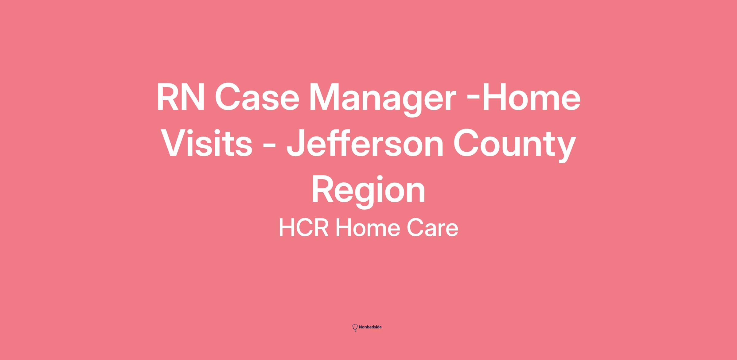 Apply for the RN Case Manager - Home Visits role at HCR Home Care.