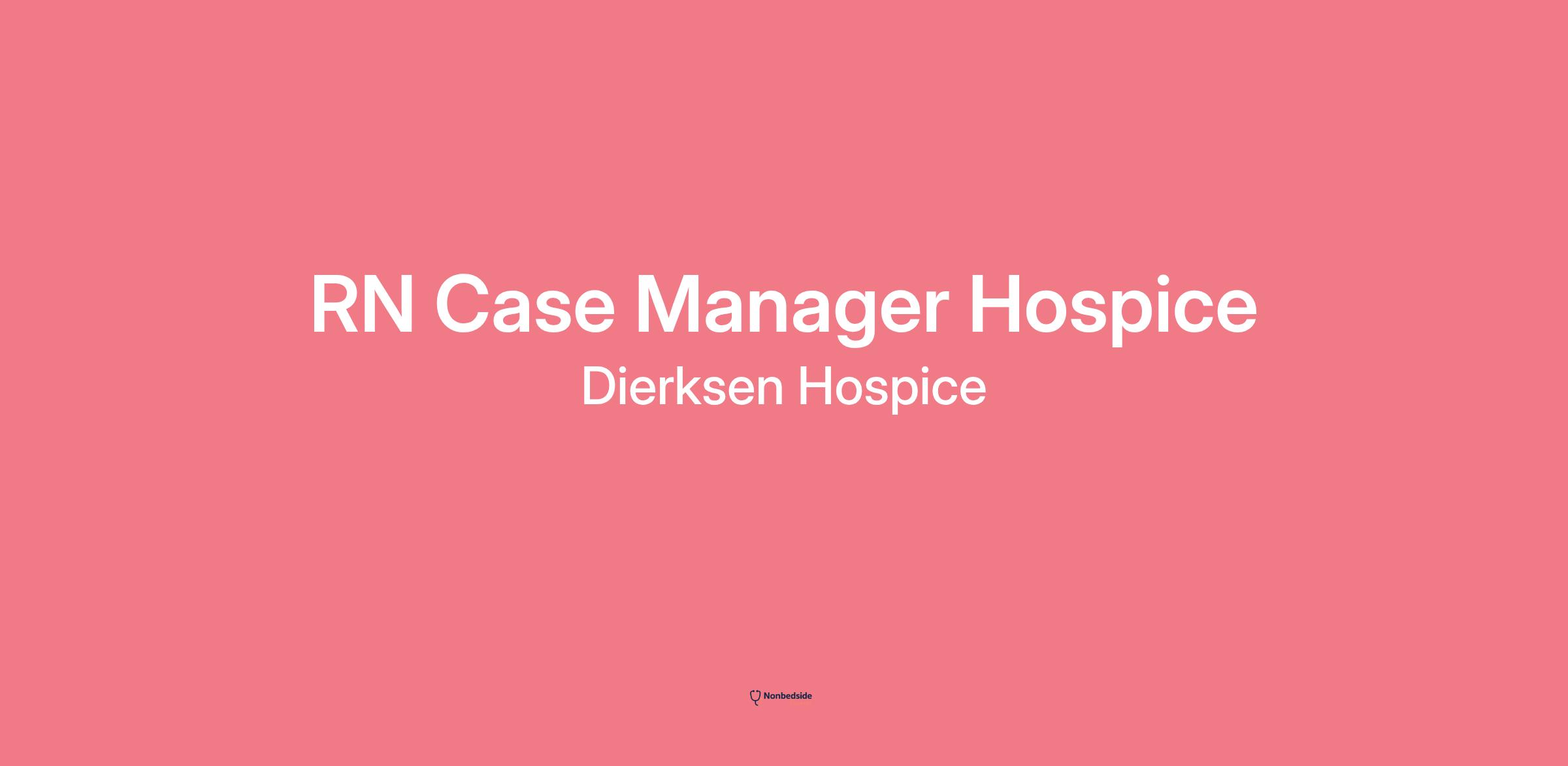 At Dierksen, we take immense pride in being a premier provider of end-of-life care. Our mission-driven and patient-centric approach sets us apart, and we are rapidly expanding. We are looking for a high-energy, compassionate, detail-oriented Registered Nurse (RN) to be a Hospice Case Manager for our patients. Our Hospice RN Case Managers plan, organize, and direct hospice care utilizing the nursing process of assessment, planning, interventions, implementation, and evaluation; and effectively interact with patients, caregivers, families, and other interdisciplinary team members while maintaining standards of professional nursing and clinical competency.