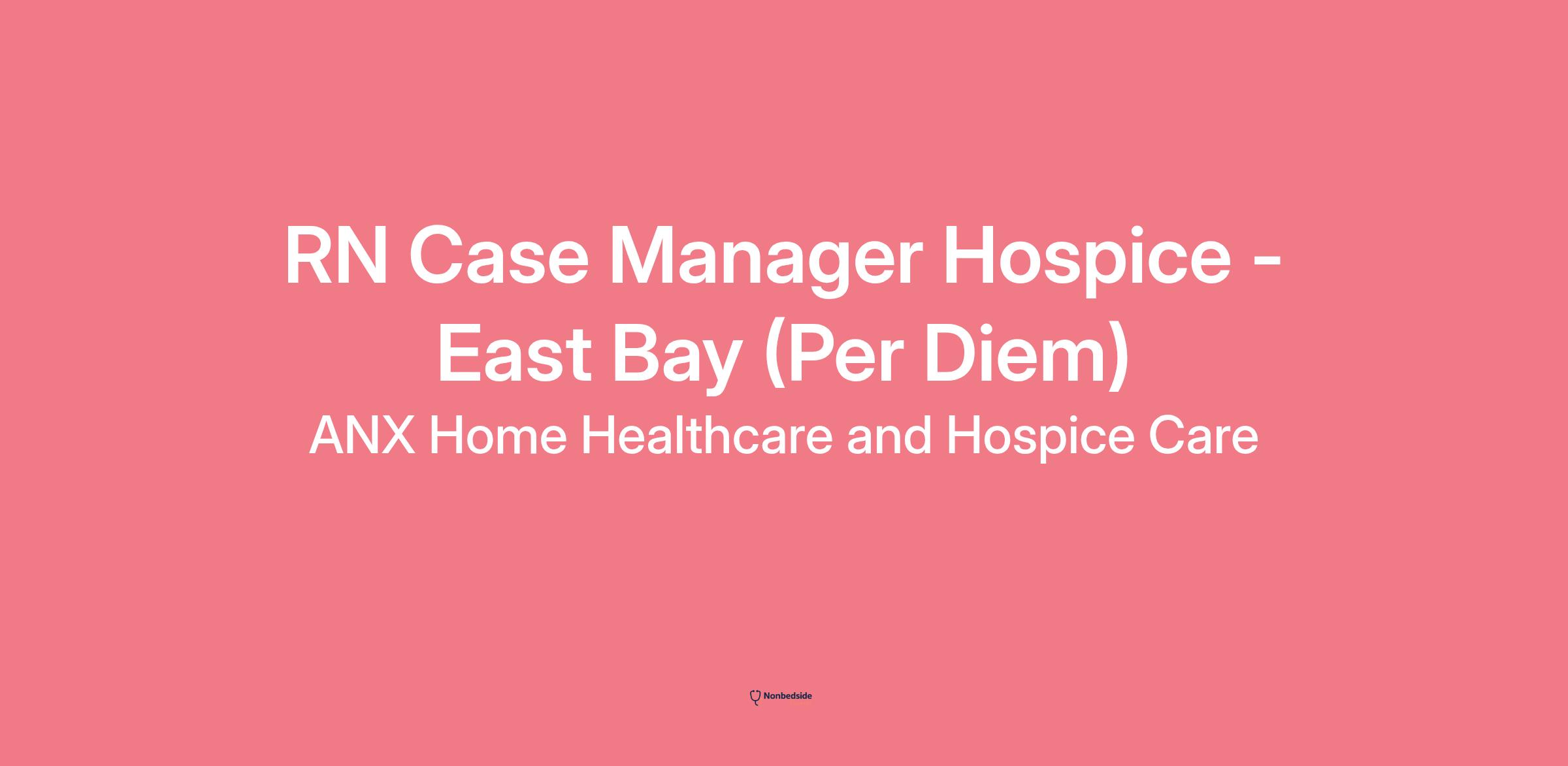 Join to apply for the RN Case Manager Hospice - East Bay (Per Diem) role at ANX Home Healthcare and Hospice Care
