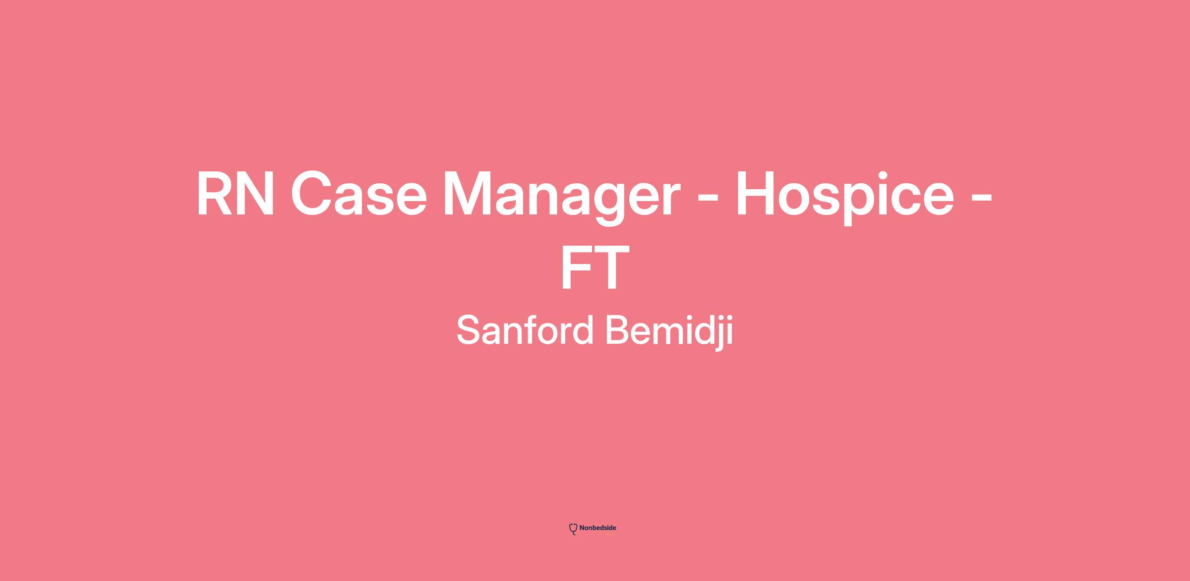 # Careers With PurposeRN Case Manager - Hospice - FT page is loaded## RN Case Manager - Hospice - FTlocations: ND, Mandantime type: Full timeposted on: Posted Todayjob requisition id: R-0237765**Sanford Health is one of the largest and fastest-growing not-for-profit health systems in the United States. We’re proud to offer many development and advancement opportunities to our nearly 50,000 members of the Sanford Family who are dedicated to the work of health and healing across our broad footprint.**Work Shift:8 Hours - Day Shifts (United States of America)Scheduled Weekly Hours:40Salary Range: $34 - $51**Union Position:**No**Department Details**Our hospice care team is committed to meeting the physical, spiritual, and emotional needs of those we serve. We strive to ensure that patients spend their last days with dignity, whether at home or in a warm, home-like inpatient setting. -Flexible scheduling available -Sign on BONUS! -Mileage paid monthly for travel within a 60-mile radius -Competitive federal rate for mileage reimbursement**Summary**Provides care to assigned patients in a caring, safe, and efficient manner and provides leadership to staff and is responsible to perform the following according to location standards, procedures, and individualized patient plans of care.**Job Description**Seeks to evaluate outcomes based on an integration among established clinical, financial and utilization data. Defines the unit of care (family and patient). Demonstrates knowledge of hospice palliative care, hospice philosophy, and scope of services. Recognizes different cultural attitudes and values towards death and dying. Identifies the five stages of grieving process. Explains advanced directives, clinical requirements, and interdisciplinary services available. Utilizes independent nursing judgment when integrating health care.Participates in creation of the plan of care and ensures the plan of care is implemented by the interdisciplinary group. Has knowledge of and utilizes appropriate age-specific structured care methodologies, such as protocols/integrated clinical pathways/guidelines/standards of care relating to the overall health care needs of neonatal, pediatric, adolescent, adult and/or geriatric patients/residents. Interviews potential residents and assesses residents in compliance with regulations, policy and procedure. Uses assessment information for admission and continued stay in the hospice community. Establishes a service plan for each resident and evaluates on an on-going basis. Ability to communicate with patients/residents, family members and others on the health care team.Must demonstrate independence, assertiveness and critical thinking when working with patients and co-workers. Ability to document clearly. Ability to solve problems. Self-motivated. Works with little direction. Ability to incorporate teaching/learning principles and adapt teaching to age group. Ability to facilitate groups and implement projects when necessary. Must be able to establish priorities, have strong flexibility and organizational skills. Must be knowledgeable about reimbursement for services provided.Will be required to work primarily day hours, scheduled weekends, and occasional evenings. May be exposed to communicable or infectious disease, hazardous materials and injury from performance of assigned duties. Is subject to multiple sensory and environmental stressors.**Qualifications**Bachelor's degree in Nursing strongly preferred. Graduate from an accredited nursing program, including, but not limited to, those accredited by the Commission on Collegiate Nursing Education (CCNE), Accreditation Commission for Education in Nursing (ACEN), or National League for Nursing Commission for Nursing Education Accreditation (NLN CNEA). Minimum of two years’ clinical experience preferred. Currently holds an unencumbered RN license with the State Board of Nursing where the practice of nursing is occurring and/or possess multistate licensure if in a Nurse Licensure Compact (NLC) state. Obtains and subsequently maintains required department specific competencies and certifications. Must possess a valid driver’s license.**Sanford is an EEO/AA Employer M/F/Disability/Vet.****If you are an individual with a disability and would like to request an accommodation for help with your online application, please call 1-877-673-0854 or send an email to talent@sanfordhealth.org.**