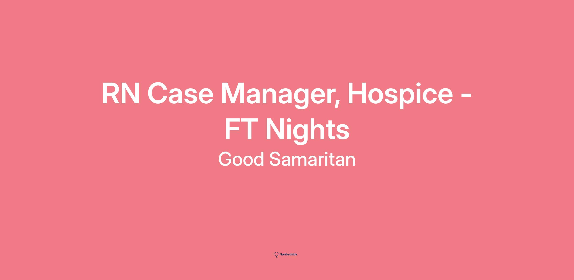 Join to apply for the RN Case Manager, Hospice - FT Nights role at Good Samaritan