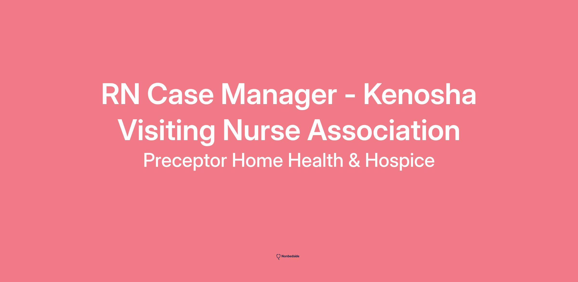 SIGN ON BONUS OFFERED!!!! Kenosha Visiting Nurse Association is growing. We are a home health agency providing services in patient homes in Southeast Wisconsin. Patient homes include private residences, assisted living facilities, memory care units, and any other place they may call home. Kenosha Visiting Nurse Association strives to provide high quality care through our multifaceted programs. We are seeking a Registered Nurse Case Manager.