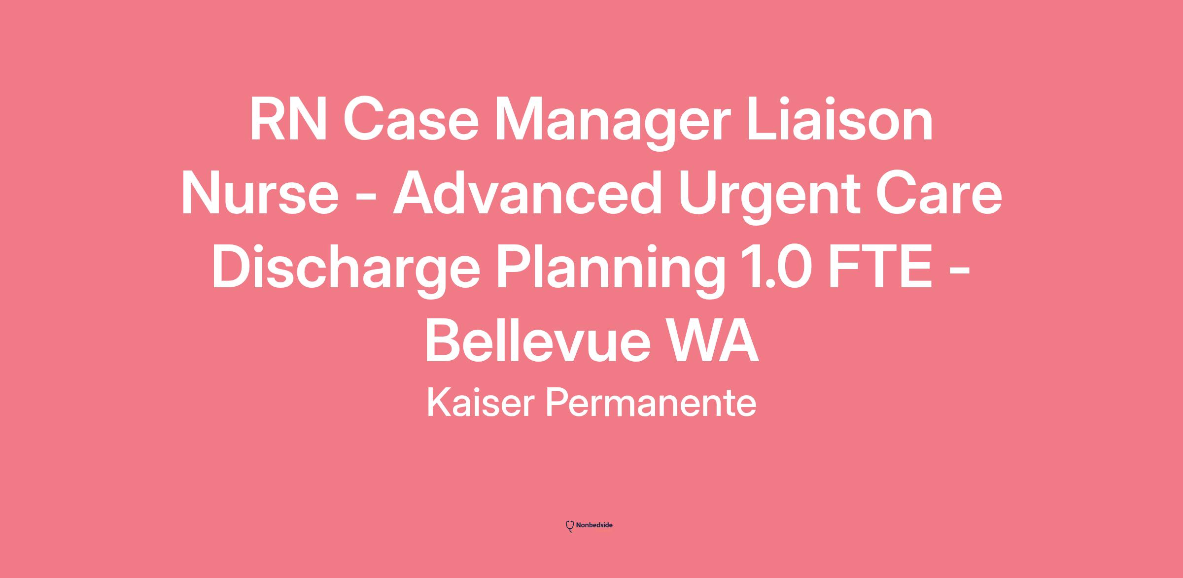 Job Summary The Care Manager will work in two settings on a periodic rotating schedule, planning the discharges and follow up care for Kaiser Foundation Health Plan of Washington patients hospitalized at a nearby network facility and carrying a case load of patients in one of the Kaiser Foundation Health Plan of Washington medical centers. Some weekends and holidays are required, and scheduled days of the week are variable. Primary responsibility is to focus on achievement of optimal patient health care outcomes while ensuring appropriate utilization of health care resources. Working closely with primary care teams, specialty care teams and medical providers, the Liaison Nurse will establish a collaborative plan of care to assure adherence to the medical plan, improvement in functional status, and improved ability to self-manage. Serves as the liaison across the internal KFHPW care continuum and between KFHPW and all externally contracted providers, facilities, and resources and provides feedback to the organization regarding the service and quality of contracted services. The Liaison Nurse collects data and provides input to leadership regarding issues or concerns related to utilization, cost, quality, service and care delivery to patients.